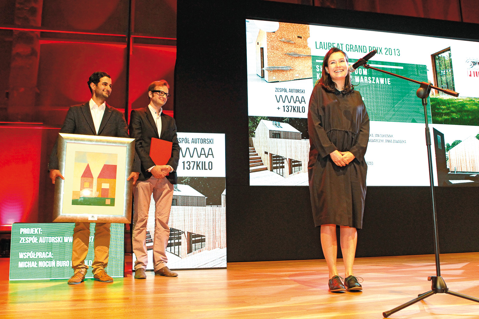 Finałowa gala odbyła się w Muzeum Historii Żydów Polskich w Warszawie – budynku, którego projekt znalazł się zresztą w finale tegorocznego konkursu. Uroczystość poprowadzili redaktor naczelny POLITYKI Jerzy Baczyński oraz krytyk sztuki Piotr Sarzyński. Na scenie gratulacje z rąk prowadzących odebrały reprezentacje pięciu pracowni: Ultra Architects, JEMS Architekci, WWAA, 137kilo, Riegler Riewe Architekten oraz projektant Muzeum Historii Żydów Polskich prof. Rainer Mahlamäki i – wspierająca projekt z polskiej strony – prof. Ewa Kuryłowicz z pracowni Kuryłowicz&Associates. Decyzją jury laureatem Grand Prix Nagrody za 2013 r. zostały pracownie WWAA i 137kilo za projekt Służewskiego Domu Kultury w Warszawie. Jury doceniło architekturę tworzoną nie tylko na ludzką skalę, ale i służebną wobec potrzeb mieszkańców. Tymczasem internauci w równoległym plebiscycie na portalu Polityka.pl najwięcej głosów oddali na Muzeum Historii Żydów Polskich, którego projekt był chwalony także przez profesjonalne jury m.in. za symbolikę i doskonałe wkomponowanie bryły budynku w sąsiadujące z nią osiedle, za niezwykłe połączenie skromności na zewnątrz z dekonstruktywistycznym rozmachem wnętrz, a także fakt, że jeszcze nieotwarte muzeum stało się ikoną miasta. Wśród gości pojawili się nominujący do nagrody – najwybitniejsi architekci i urbaniści, krytycy architektury, przedstawiciele stowarzyszeń działających na rzecz ładu w przestrzeni publicznej, jurorzy Nagrody (m.in. Grzegorz Buczek – wiceprezes Towarzystwa Urbanistów Polskich, Feliks Falk – reżyser, scenarzysta, absolwent ASP w Warszawie, Marek Kościkiewicz – muzyk, producent, absolwent warszawskiej ASP, Ewa P. Porębska – redaktor naczelna miesięcznika „Architektura-Murator”, Krzysztof Sołoducha – redaktor naczelny portalu Sztuka Architektury, Bogna Świątkowska – prezes Fundacji Nowej Kultury Bęc Zmiana, Jarosław Trybuś – krytyk architektury, zastępca dyrektora ds.