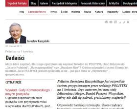 2. Kaczyński felietonistą POLITYKI.