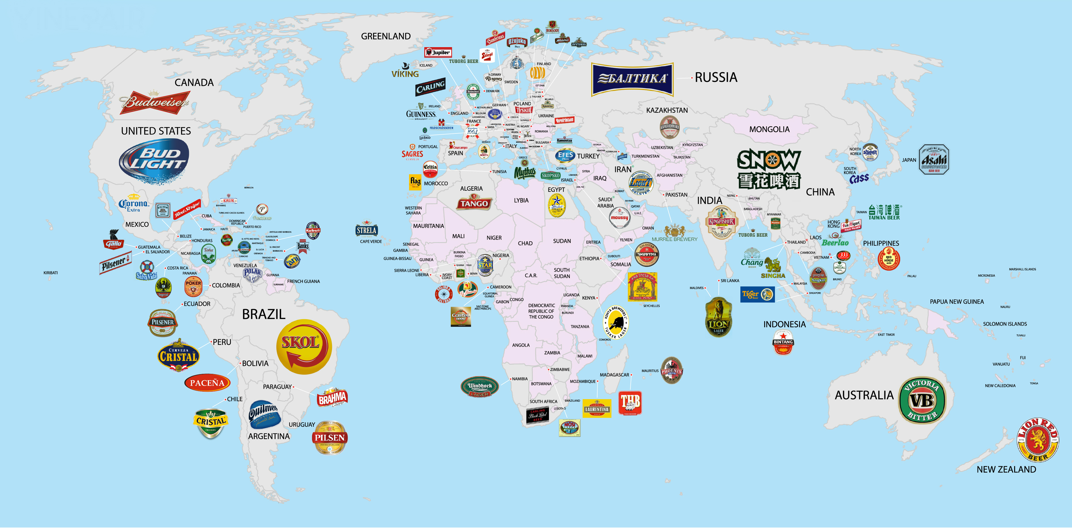 Żeby przygotować mapę, serwis Vinepair.com posłużył się danymi z lokalnych firm. Zbadał też dostępność piw wybranych koncernów na rynkach poszczególnych krajów. Jeśli takich danych zabrakło – kraj został pominięty (dotyczy to głównie Afryki).