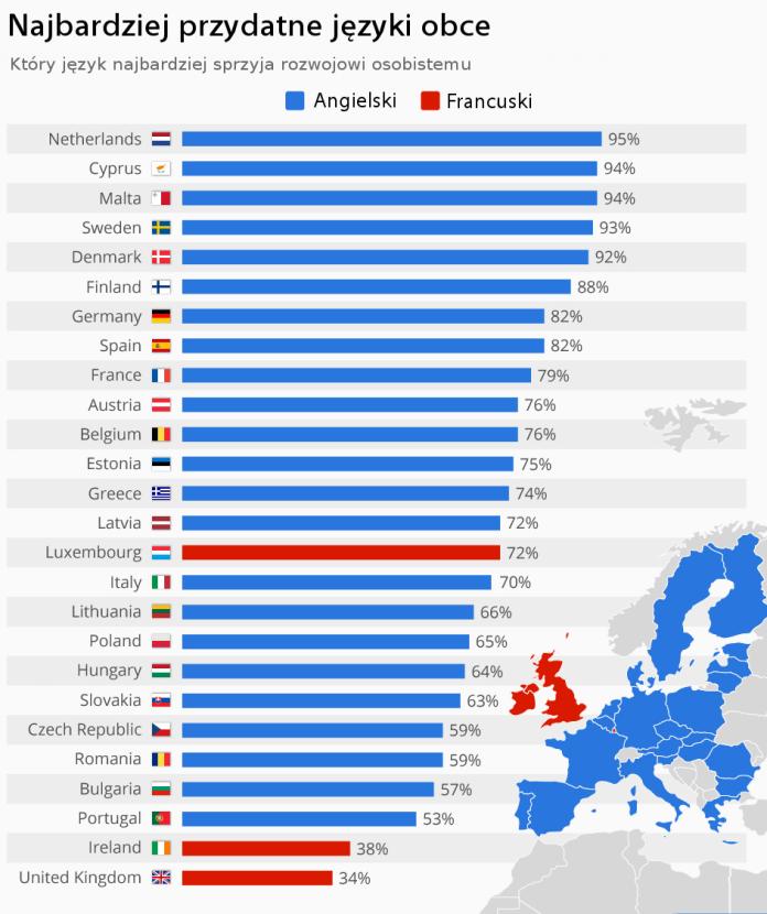 Popularność angielskiego koresponduje z przekonaniem Europejczyków co do tego, który język obcy najbardziej służy osobistemu rozwojowi. Na zadane tak pytanie mieszkańcy niemal wszystkich nieanglojęzycznych krajów wskazują właśnie angielski. Wyjątkiem są obywatele małego Luksemburga, który za bardziej przydatny uznali język francuski:
