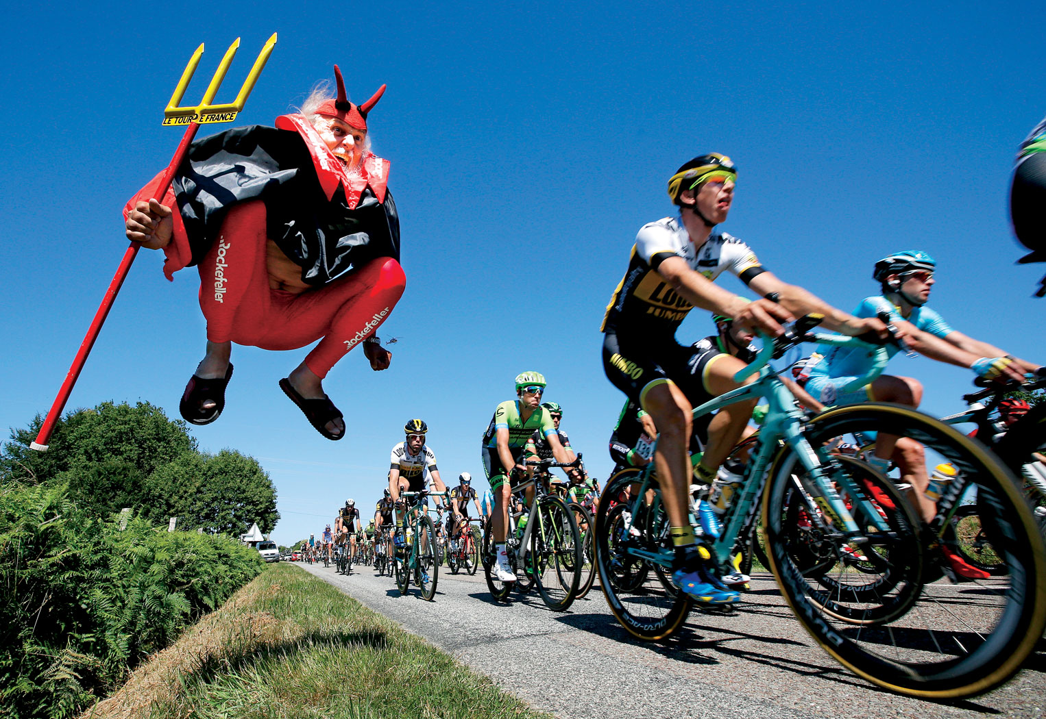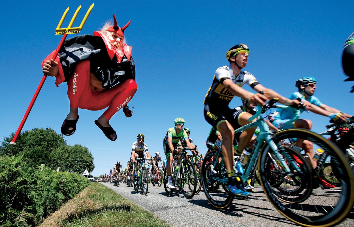 Wyglądają jak klony różniące się tylko wzrostem. Spaleni słońcem, ze spierzchniętymi ustami, schodzącą tu i tam skórą i zmęczeniem ukrytym za okularami przeciwsłonecznymi. W stanie skupienia niepasującym do pstrokacizny, którą mają na sobie. Uosobienia anatomicznej skrajności: od pasa w górę żylaści, za to nogi mogliby prezentować na praktycznych zajęciach z budowy ludzkiego mięśnia. W niektórych przypadkach – patologii w budowie. Na starcie było ich 198, w połowie wyścigu ubyło 18 – większość z powodu urazów odniesionych w wypadkach na trasie.