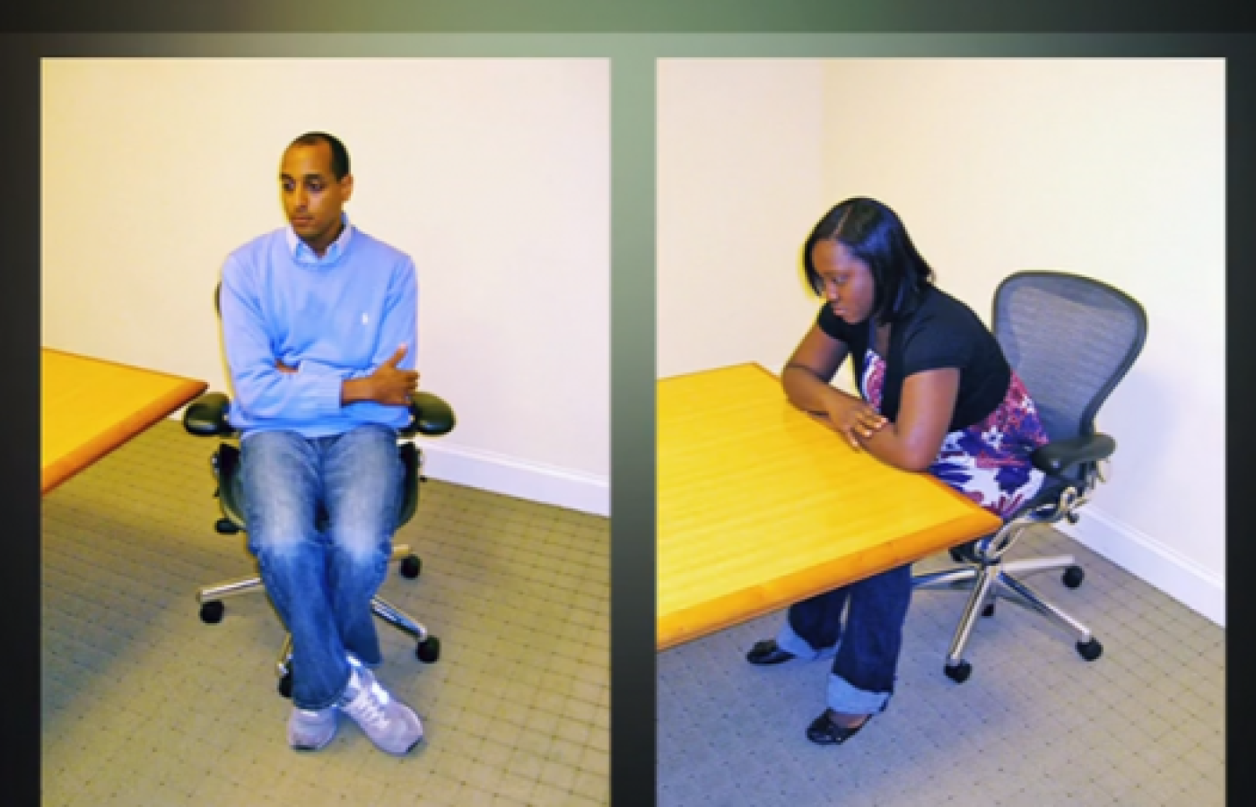 Natomiast gdy czujemy się bezsilni, zwykle się zamykamy. Zwijamy. Dodatkowo, w sytuacjach związanych z władzą, mamy tendencję do uzupełniania sygnałów niewerbalnych innych ludzi. To znaczy, że jeśli ktoś okazuje wobec nas swoją władzę, staramy się „zmniejszyć”, a nie naśladować. Stajemy się jego przeciwieństwem.