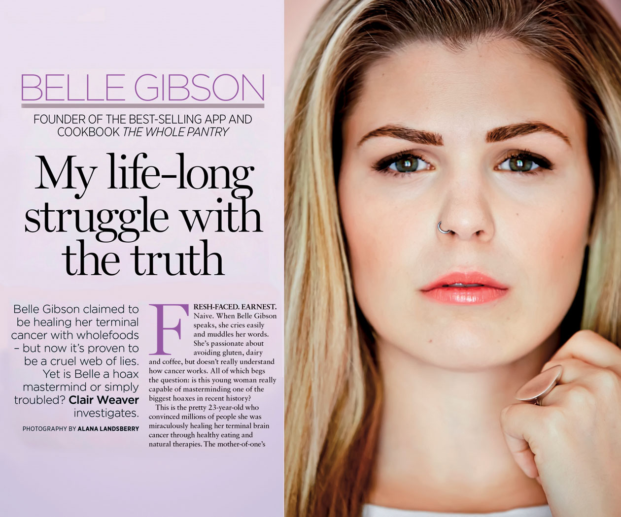 Jej blog, na którym opisywała swoje zwycięstwo nad rakiem, nazwała „The Whole Pantry”, co można przetłumaczyć jako pełną spiżarnię. Wypełniła ją po brzegi treściami, które podchwyciło mnóstwo wyznawców filozofii wellness, przeciwstawiających się klasycznej medycynie. Widząc zainteresowanie swoim blogiem, błyskawicznie utworzyła aplikację z instruktażem zdrowego trybu życia, wydała książkę kucharską i stała się w Australii celebrytką, której kolorowe magazyny poświęcały nie tylko rozkładówki, ale też przyznawały zaszczytne tytuły: Najbardziej Inspirująca Kobieta Roku („Elle”), Nieustraszona Kobieta („Cosmopolitan”).