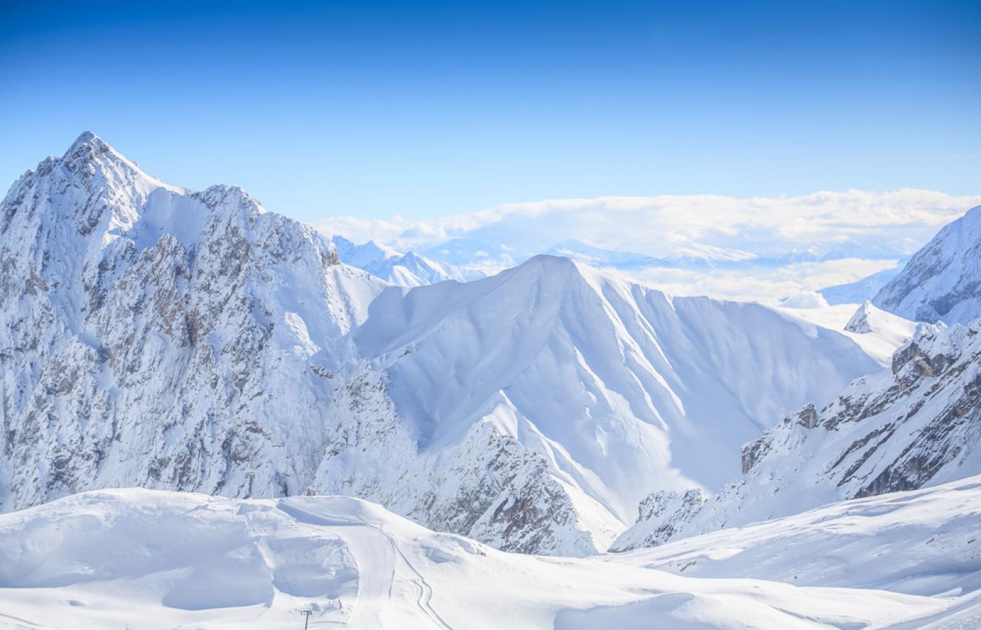 Najwyższym szczytem Niemiec jest Zugspitze znajdujący się w rejonie Garmisch-Partenkirchen. Jego wysokość to 2962 metry (od tej liczby wzięła się swoją nazwę jedna z kawiarni mieszczących się na szczycie). Dzięki swojemu położeniu teren ten może poszczycić się najdłużej trwającym sezonem narciarskim, bo kończącym się dopiero na początku maja. Jest to zarazem jedyny niemiecki ośrodek położony na lodowcu. W Zugspitze wyznaczono 14 tras zjazdowych, z których 3 są oznaczone jako Super G – wyjątkowo szybkie i dość niebezpieczne. Na sam szczyt lodowca od strony Niemiec można wjechać na dwa sposoby – kolejką zębatą, poprowadzoną przez specjalnie wydrążony tunel, lub kolejką linową. Z wierzchołka roztacza się oszałamiający widok na ponad 400 górskich szczytów.