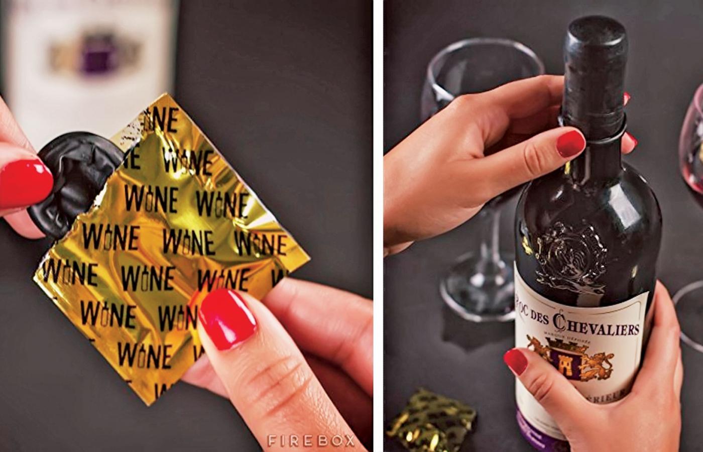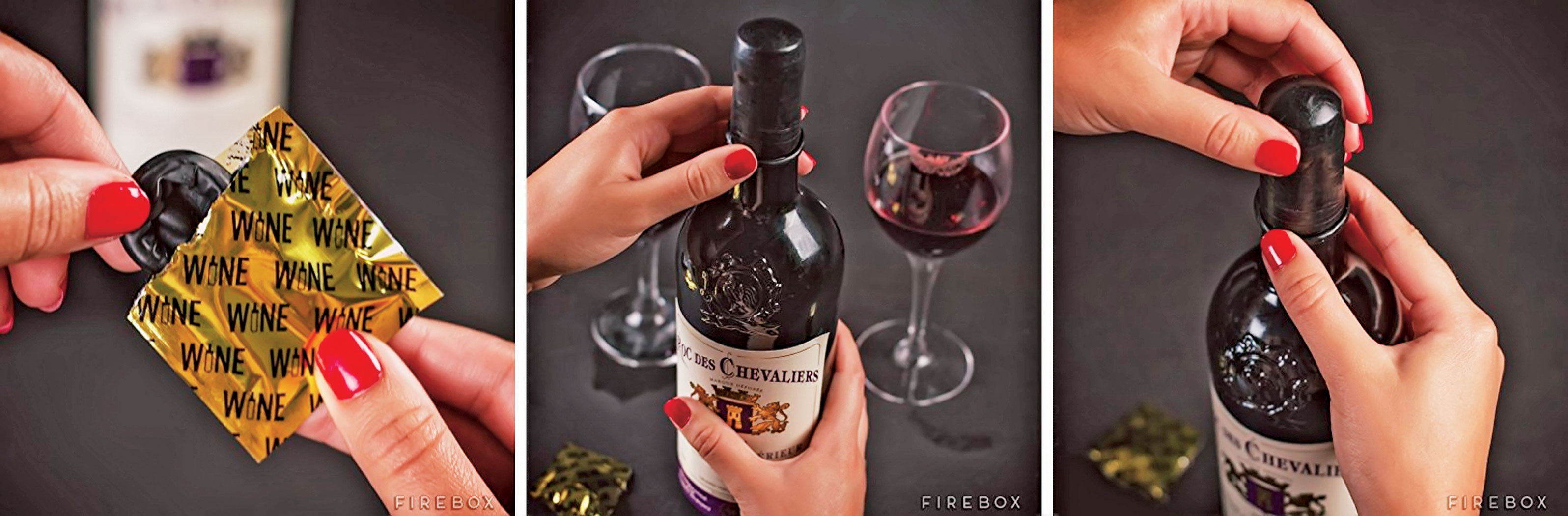 Romantyczna kolacja, być może jedna z pierwszych randek. Kieliszek pysznego wina rozluźnia atmosferę, ale i prowokuje pytanie – czy idziemy na całość? I dopiero gdy odpowiedź jest negatywna, warto mieć pod ręką zabezpieczenie – dla otwartej butelki, której nie będziemy tego wieczoru kończyć. Zamiast brutalnego wpychania korka polecamy otulenie szyjki czarnym Wine Condom, czyli winną prezerwatywą, która odetnie dopływ powietrza winu, pozwalając zachować jego walory, a nam – umiarkowanie w spożyciu.