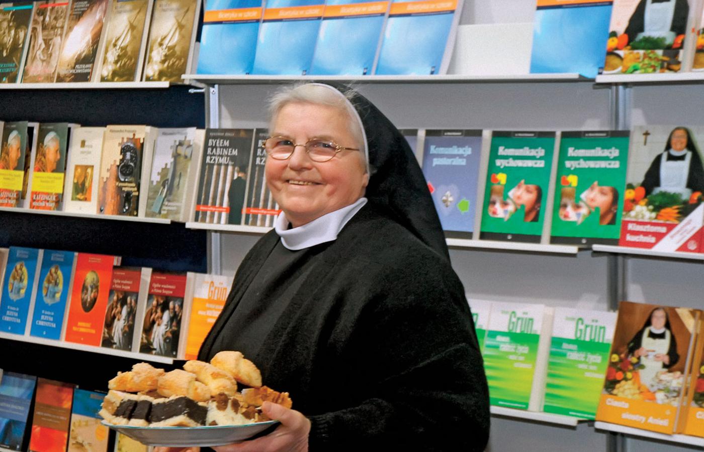 Za sieć dystrybucyjną dla zakonnych przepisów robią dziś placówki Poczty Polskiej. Na pęczniejących ostatnio stojakach z patriotyczną i katolicką literaturą, obok „Małej księgi patrioty” z tekstami i chwytami gitarowymi pieśni wojskowych i harcerskich, biografii papieży i streszczeń lektur szkolnych, pręży się seria książek siostry Marii z recepturami na „rodzinne i uroczyste obiady”, „pierogi i dania mączne”, „dania i potrawy z ziemniaków” i inne potrawy. Zakonnica o wyglądzie serdecznej cioci-babci uśmiechem zachęca z okładek do kupienia swoich przepisów. Kiedy ze zdziwieniem dowiaduję się, że siostra Maria naprawdę nie istnieje, jest postacią stworzoną na potrzeby marketingowe (do dziś ukazało się 21 pozycji z tej serii!), kontaktuję się z wydawnictwem Martel z pytaniami o genezę pomysłu, kto kompiluje przepisy i jak sprzedają się książki. Po kilku dniach dostaję odpowiedź z informacją, że „właściciel wydawnictwa odmówił przekazania danych”.