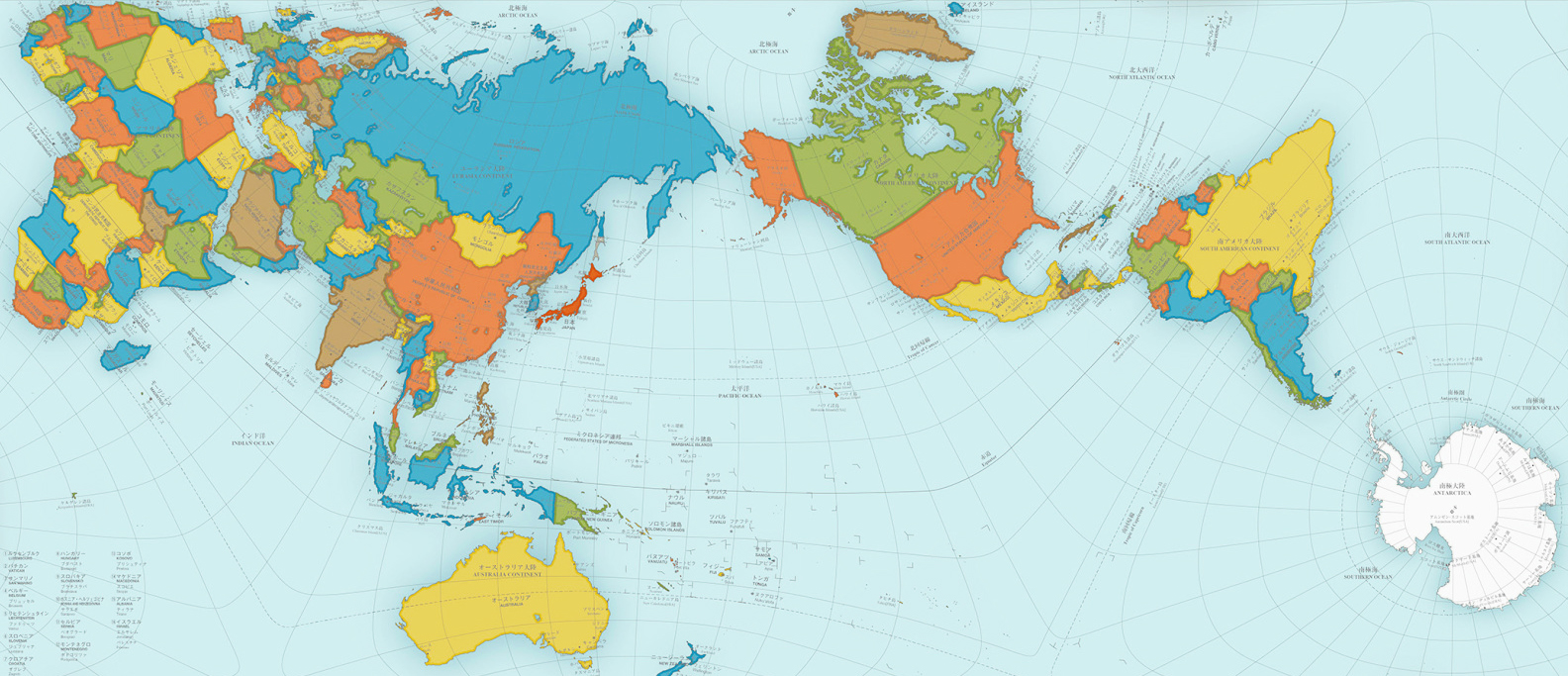 O proporcje postanowił zadbać japoński architekt Hajime Narukawa. Jego projekt powstaje od 1999 r. Ma kształt prostokąta, utworzonego w wymiarze 2D. Twórca podzielił świat na 96 trójkątów, formując z nich czworościan. Po rozwinięciu czworościanu otrzymał taką właśnie mapę.