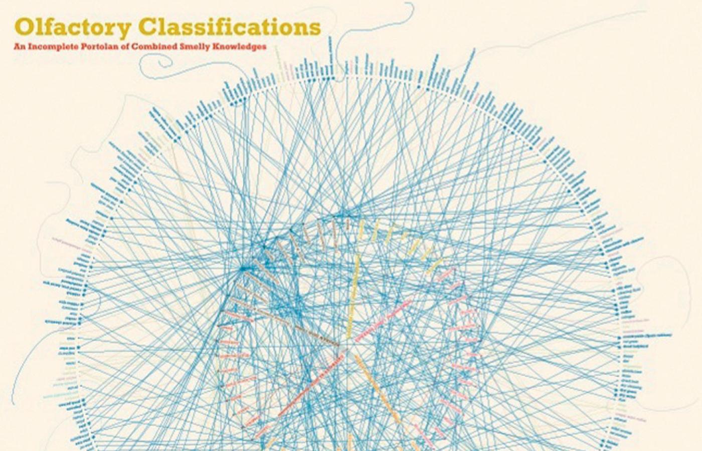 Na białym tle wiją się różnokolorowe linie o nieregularnych kształtach. Wśród nich różnobarwne kropki. Całość przypomina nieco abstrakcyjny obraz. Że nim nie jest, można się zorientować po umieszczonej w rogu legendzie. Zielony: plaża, morze, piasek; żółty: bary z rybą i frytkami; brązowy – kawa. Tak w uproszczeniu wygląda zapachowa mapa Edynburga w rześki dzień.