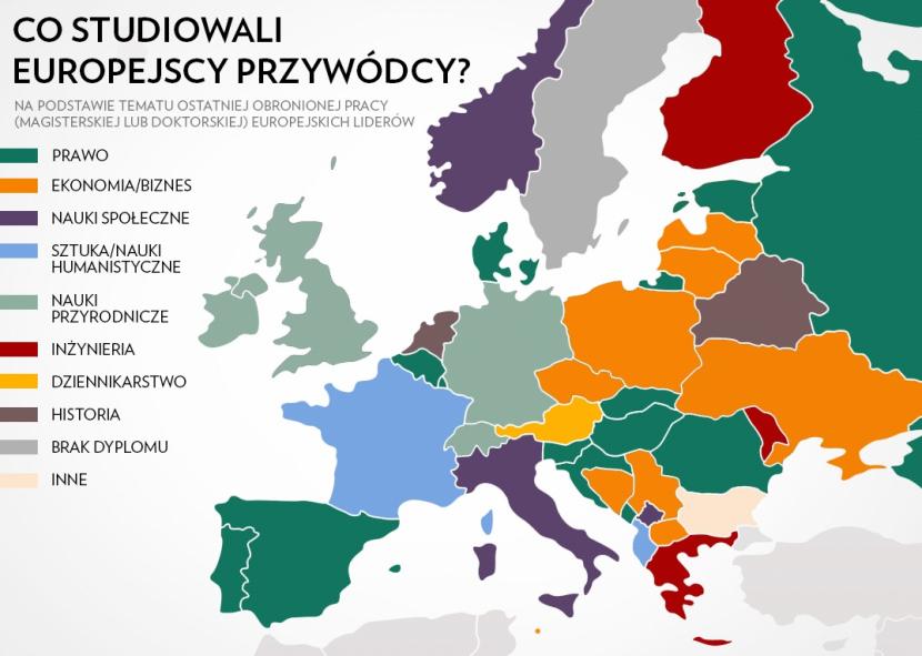 Jakie umiejętności i wiedza pomogły europejskim przywódcom w karierze? Spójrzmy na mapę: