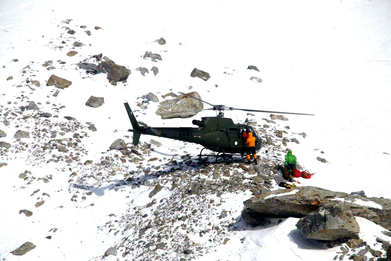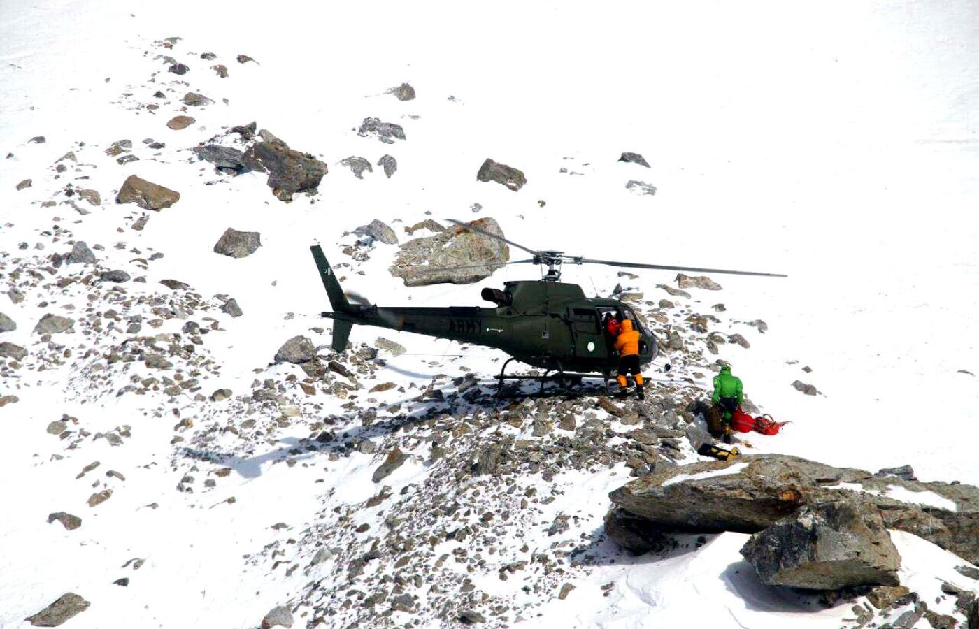8 butli tlenowych, rozbudowany sprzęt medyczny, worek Gamova, wyżywienie i gaz na cztery dni dla sześciu osób, sprzęt wspinaczkowy). Ratownicy zostali przetransportowani do Skardu z międzylądowaniem w bazie wojskowej w Payu na tankowanie.
