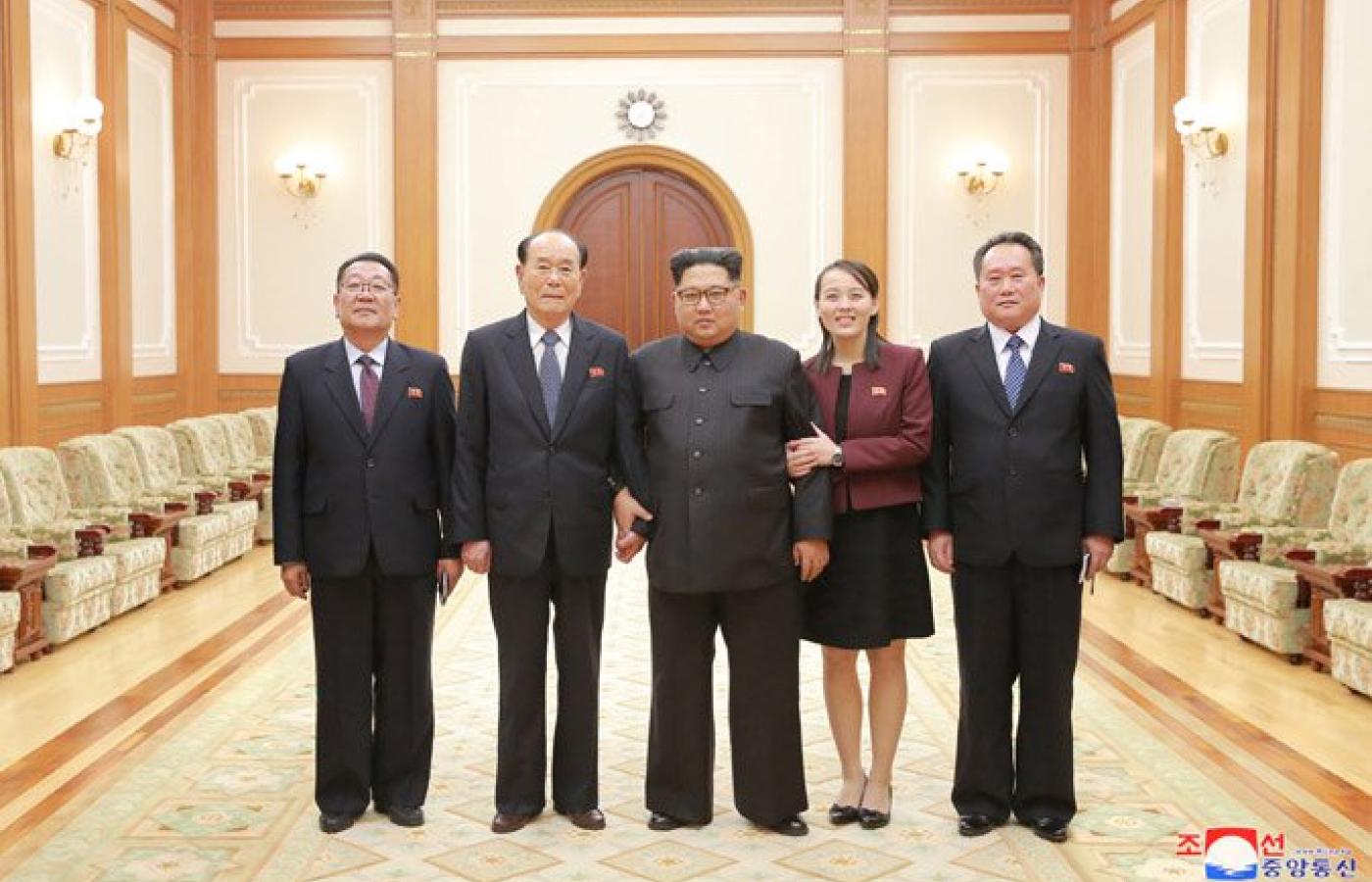 Delegacji przewodniczyła młodsza siostra północnokoreańskiego lidera – Kim Jo Dzong. W Pjongczangu towarzyszyli jej inni wysocy rangą urzędnicy, zaufani Kima. Do prasowej notki dołączono zdjęcie – niezwykle wymowne – z którego można wyczytać wiele o obecnej sytuacji politycznej w Korei.