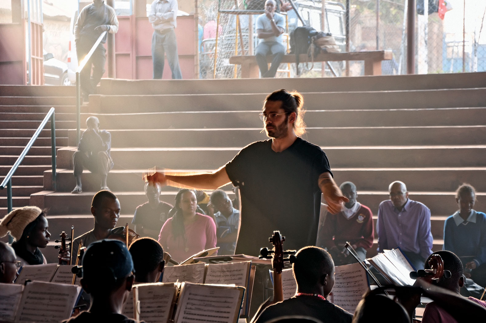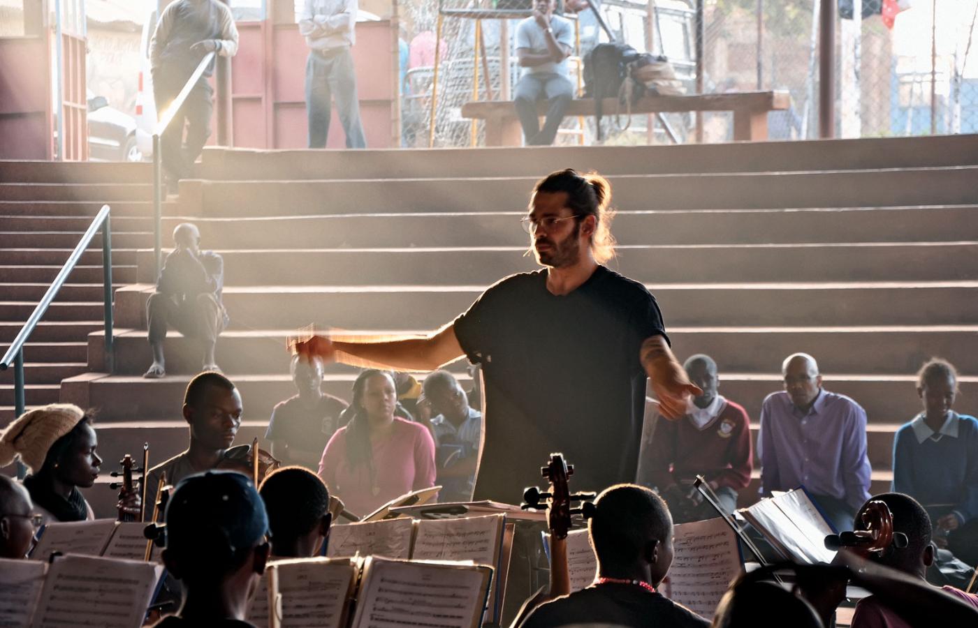 Slums Korogocho w Nairobi, wtorek po południu. Drzwi szkoły otwierają się, wybiega siedmiu chłopców w granatowych mundurkach. Właśnie skończyli pisać egzamin semestralny i jadą na próbę orkiestry Ghetto Classics. Wskakują na pikipiki, kierowcy odpalają silniki. Dziś ważny dzień. Pierwsza próba z kompozytorem Jimkiem z Polski. Wśród wiolonczelistek wyraźnie wyczuwalna ekscytacja: – Ale luzak, i jak ubrany. No i ma fajny tatuaż z nutami na ramieniu.