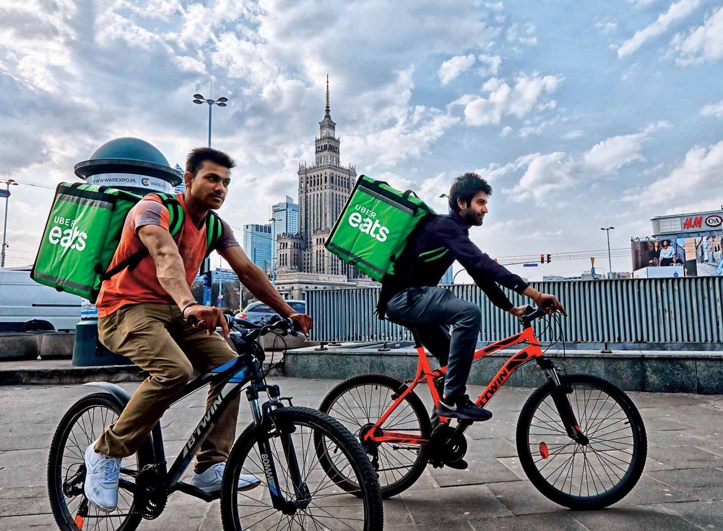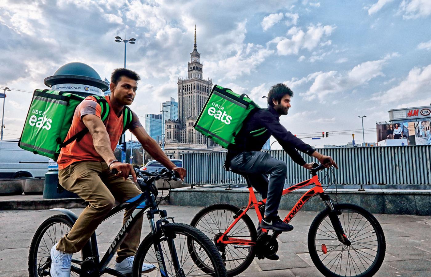 Pędzą po stolicy na rowerach i skuterach, z zarzuconymi na plecy wielkimi pojemnikami z jedzeniem. A klientela jest coraz liczniejsza. Rodzimy sektor gastronomiczny zmienia się pod wpływem takich aplikacji i firm, jak Pyszne.pl czy PizzaPortal, a od przeszło roku także dzięki UberEATS, który działa globalnie, ale myśli lokalnie. Dlatego dostawcy w naszym kraju nie poruszają się, jak w USA, chevroletami, ale na dwóch kółkach. Albo miejską komunikacją.