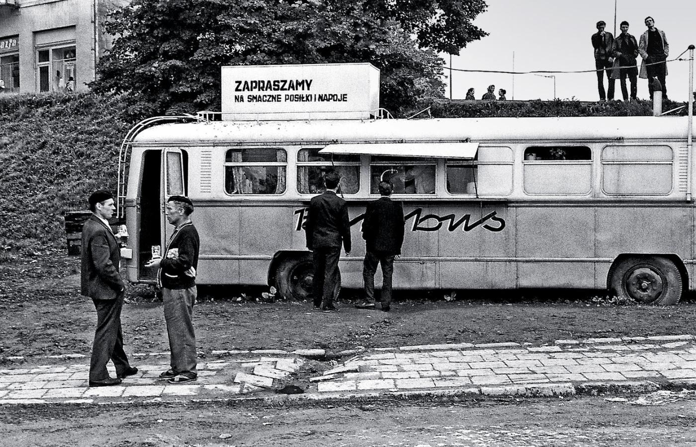 Syn Teofila podchodzi do jednego z food trucków. W środku jak w ukropie uwijają się dwie osoby smażące chrupiącego kurczaka. – Mój ojciec i pani Hanf też mieli takie tempo – kiwa głową z uznaniem. – On za barem, ona w mikrokuchni znajdującej się obok szoferki. Ojciec upchnął w niej piec węglowy, kuchenkę elektryczną, rząd szafek, kawałek blatu i zlewozmywak. Woda do mycia płynęła grawitacyjnie z kilkusetlitrowej beczki na dachu. W centralnej części barobusu był bufet, a dalej kilka stolików – rekonstruuje plan pojazdu.