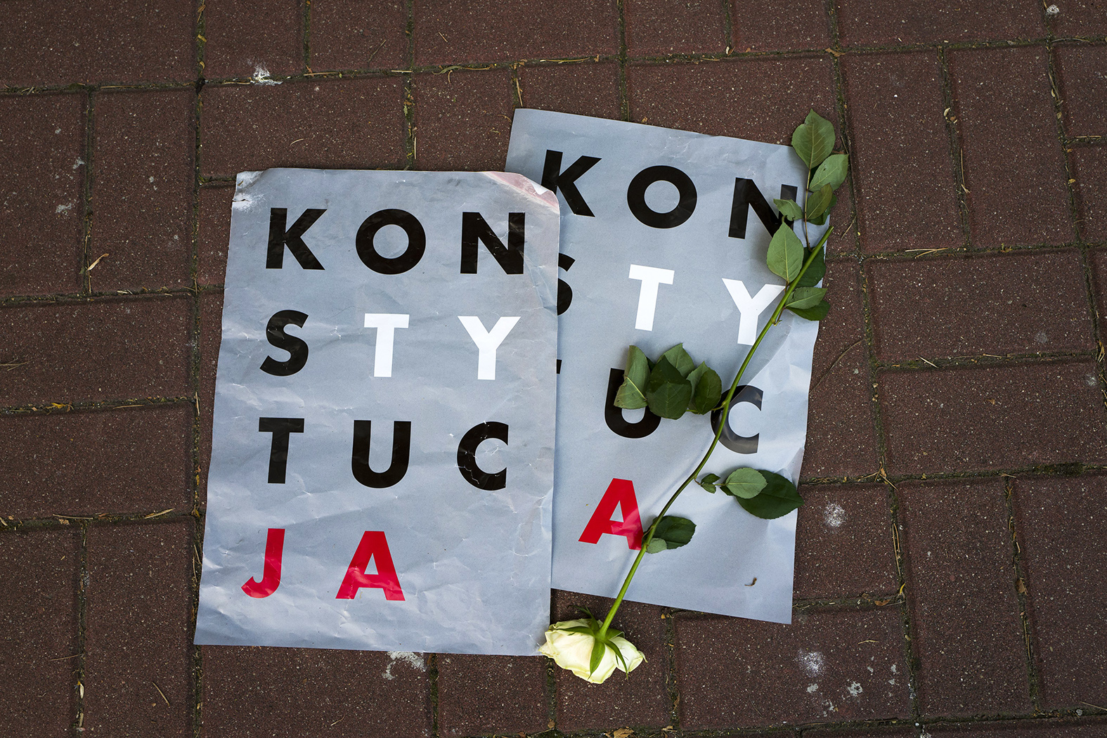 To była połowa lipca. Stałem na Krakowskim Przedmieściu z przyjacielem Mateuszem Halawą. Jeżeli to ja jestem matką „Konstytucji” – on jest ojcem. Albo na odwrót (śmiech). Byliśmy przerażeni kierunkiem, w którym zmierza Polska. Oglądaliśmy tłum demonstrantów i nagle zobaczyliśmy, że ktoś niesie wydrukowany plakat „Konstytucja”. Mateusz stwierdził, że musimy coś zrobić, i zaproponował wydrukowanie moich plakatów. Następnego dnia obdzwonił znajomych i udało mu się zebrać odpowiednią sumę pieniędzy. Ustaliliśmy, że zmienię tło plakatu na szare, żeby zmniejszyć koszty druku. Drukarz, do którego Mateusz się dodzwonił, powiedział, że przygotuje 700 sztuk na za tydzień. A kiedy otrzymał plik mailowo, odpisał, że przygotuje 7 tys. sztuk jeszcze tego samego dnia! Plakat „chwycił”. W kolejnych dniach dodrukowaliśmy kilkadziesiąt tysięcy egzemplarzy.