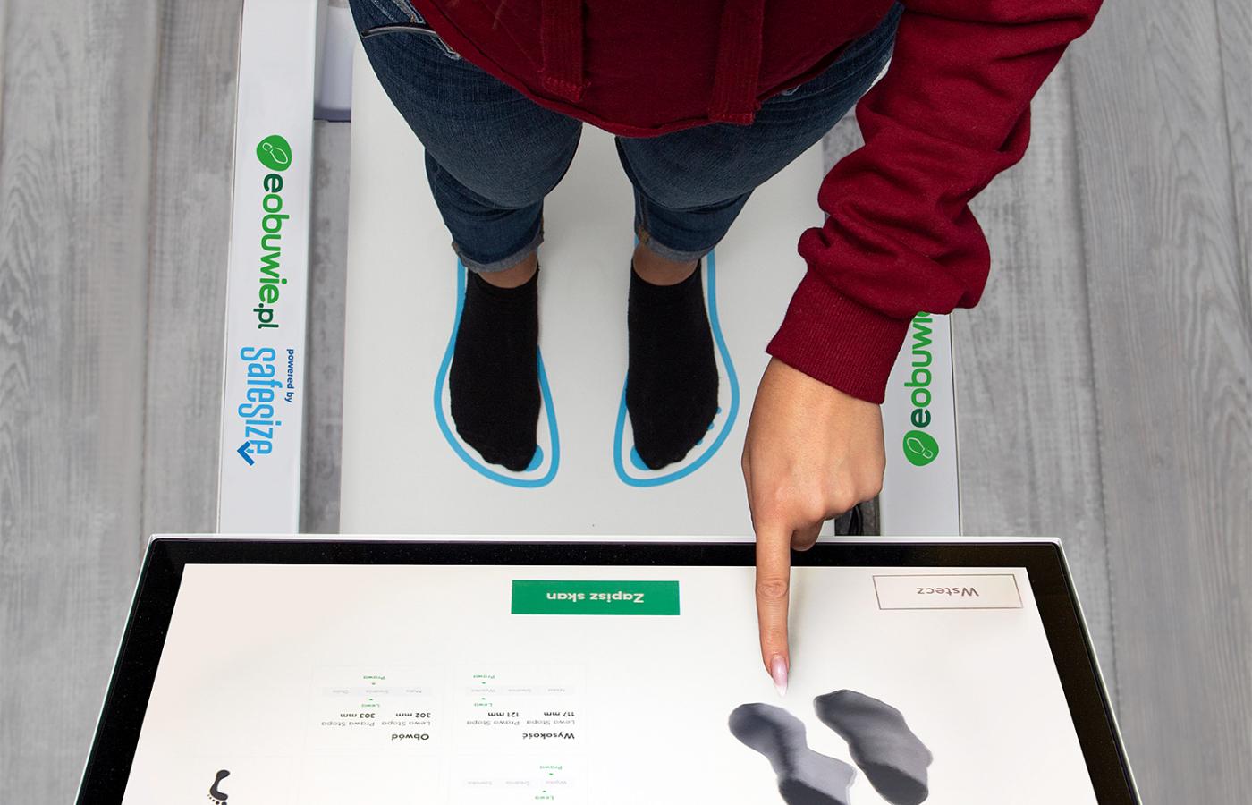 Proces skanowania jest prosty. System esize.me jest całkowicie bezpieczny, intuicyjny w obsłudze. Skan możemy wykonać sami lub w asyście pracownika eobuwie.pl. Użytkownik musi zdjąć buty, stanąć na skanerze, wprowadzić podstawowe dane nt. płci i wieku. Po kilku sekundach powstaje obraz 3D stóp i ich rozmiary: długość, szerokość, wysokość i tęgość. Skan wykonuje się jednorazowo, można przypisać go do swojego numeru telefonu i adresu e-mail i korzystać z rekomendacji: zarówno w sklepach stacjonarnych eobuwie.pl jak i przy zakupach internetowych.