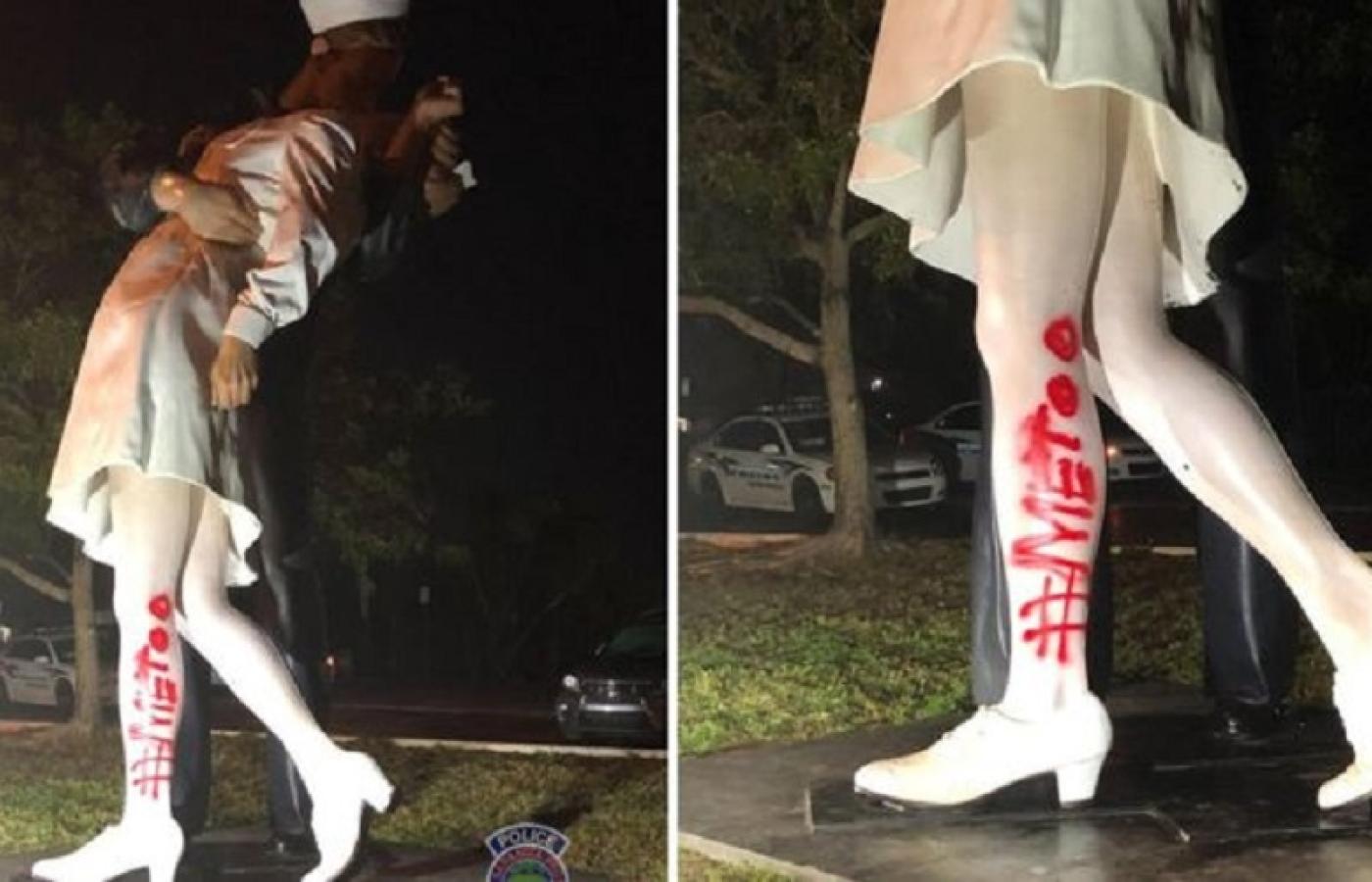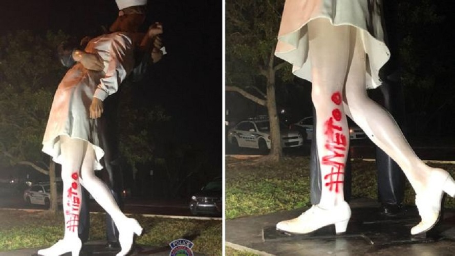 Pomnik mający utrwalać scenę ekstatycznej radości z faktu, że wreszcie zapanował pokój, zamienił się... w oskarżenie o molestowanie.