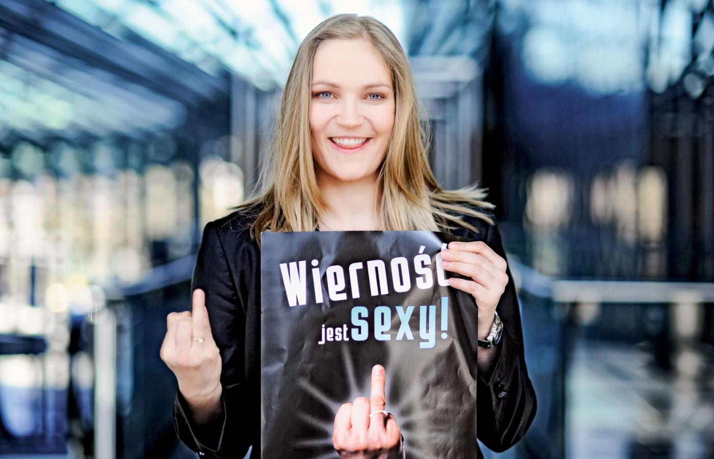 U nas promocję konfekcji wzięła na siebie Dominika Figurska, aktorka „M jak miłość” i kandydatka do Parlamentu Europejskiego. O ambasadorce zrobiło się głośno przed kilku laty, gdy dopuściła się niewierności. Publiczna skrucha sprawiła, że pokochali się z prawicą z wzajemnością. Celebrytka pojawia się w TV Republika, TVP Info, śniadaniówkach, światowych dniach młodzieży, katolickiej kampanii „Wierność jest sexy”, otrzymała nawet rólkę w filmie „Smoleńsk” i posadę radnej do sejmiku województwa mazowieckiego z listy PiS. Szykując się na stanowisko europejskie, została twarzą ewangelizującej konfekcji, prezentując się m.in. w bluzie „Niech żyje Chrystus Król” (129 zł). Jednak mimo publicznego upokorzenia się, prześladowana jest przez gustujących w świeckich nadrukach, którzy wyzywają ją od hipokrytek.