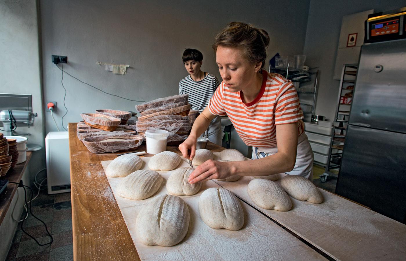 O szóstej rano Weronika Nogańska (29 lat) drewnianą łopatą ważącą koło pięciu kilo wyciąga pierwsze upieczone bochny. Przerzuca kilkanaście kilogramów na półkę. Potem łapie 25-kilogramowy worek mąki. Sama waży 50 kg i nosi ubrania nr 34.