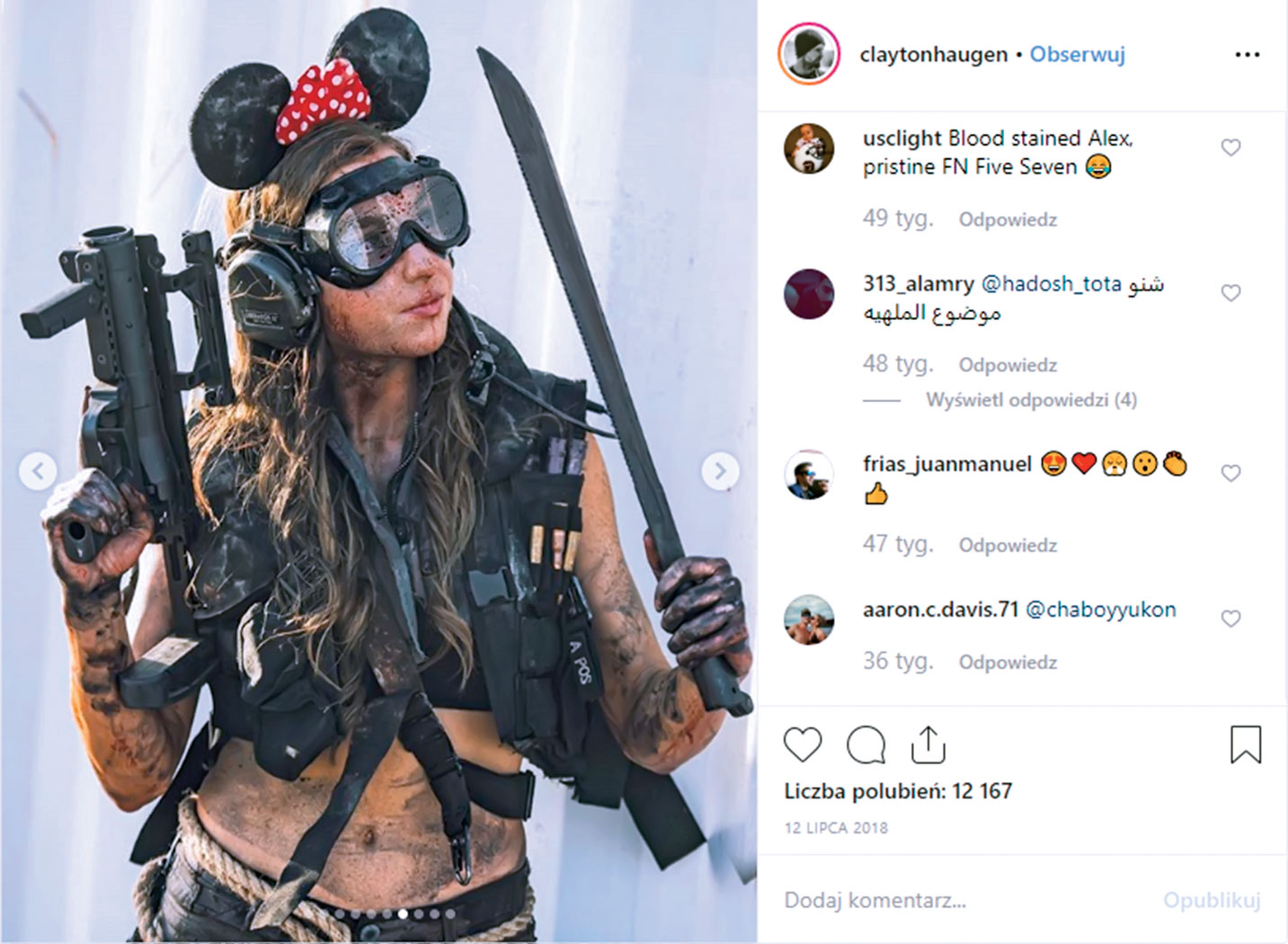 Broń i akcesoria z nią związane w teorii nie pasują do Instagrama, w swej istocie cukierkowego, pozytywnego, upiększającego rzeczywistość. Ale ładny kadr i odpowiednia poza najwyraźniej czynią cuda.