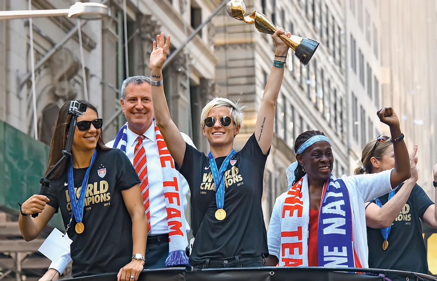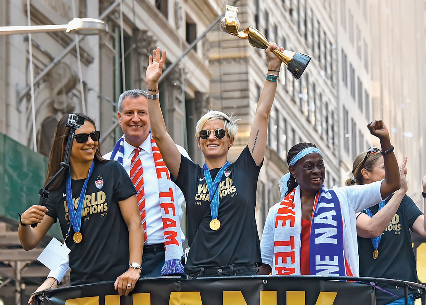 Pomundialowy benefis Amerykanek był przedstawieniem jednej aktorki – Megan Rapinoe, podpory reprezentacji od kilkunastu lat, jej współkapitanki i zdobywczyni sześciu bramek na ostatnich mistrzostwach. Na boisku najczęściej grywa w pomocy, ale w życiu nie stroni od ofensywy. Jako zdeklarowana lesbijka walczy o prawa homoseksualistów. Podczas odgrywania narodowego hymnu klęka – idąc w ślady zawodowego futbolisty Colina Kaepernicka, który w ten sposób dał wyraz swej niezgodzie na nierówne traktowanie kolorowych Amerykanów, a zwłaszcza nadużywaniu wobec nich przemocy przez policję. Wraz z koleżankami z zespołu walczy też o równość płac w zawodowym sporcie. Ale chce też tchnąć w ludzi ducha równości i braterstwa, pobudzić ich do działania, wzniecić poczucie odpowiedzialności za wspólne sprawy. Podczas oficjalnej parady mistrzyń, zorganizowanej przez władze Nowego Jorku, Rapinoe mówiła, że to ważne być fanem, ale ważniejsze – obywatelem, który nie przechodzi obojętnie wobec krzywdy i niesprawiedliwości. Któremu chce się zrobić coś dla innych. Bo miłość trzeba przedłożyć nad nienawiść. Więcej słuchać, a mniej mówić. To już delikatna aluzja do obecnego prezydenta USA.