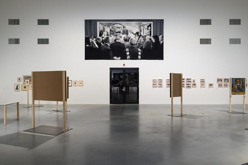 Nasuwa się pytanie: kto jest niezbędny? Z pewnością trudno byłoby wyobrazić sobie ekspozycję o tematyce antyfaszystowskiej bez ikony sztuki antywojennej. Ważnym punktem „Nigdy więcej” jest więc oczywiście „Guernica” Pabla Picassa. Twórcy wystawy świetnie poradzili sobie z niemożnością pokazania oryginalnego dzieła. Mamy zatem zbiór fotografii prowadzących nas przez historię dzieła Picassa, przybliżających dylematy twórcze mieszające się z polityką. Prawie namacalnie obcujemy z fazami powstawania obrazu w pracowni przy rue des Grands-Augustins w Paryżu dzięki dokumentacji stworzonej przez Dorę Maar, ówczesną partnerkę Picassa, artystkę, fotografkę i antyfaszystowską aktywistkę. Jest oczywiście kopia dzieła Picassa. „Guernikę (kopię obrazu Pabla Picassa)” namalował w 1955 roku Wojciech Fangor – artysta, którego również nie mogło na wystawie zabraknąć.