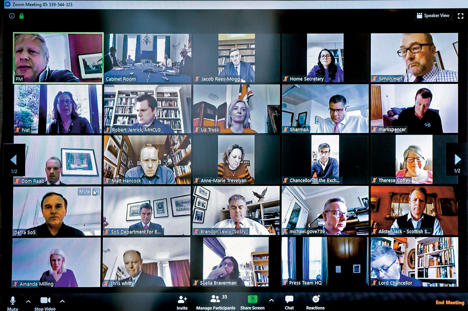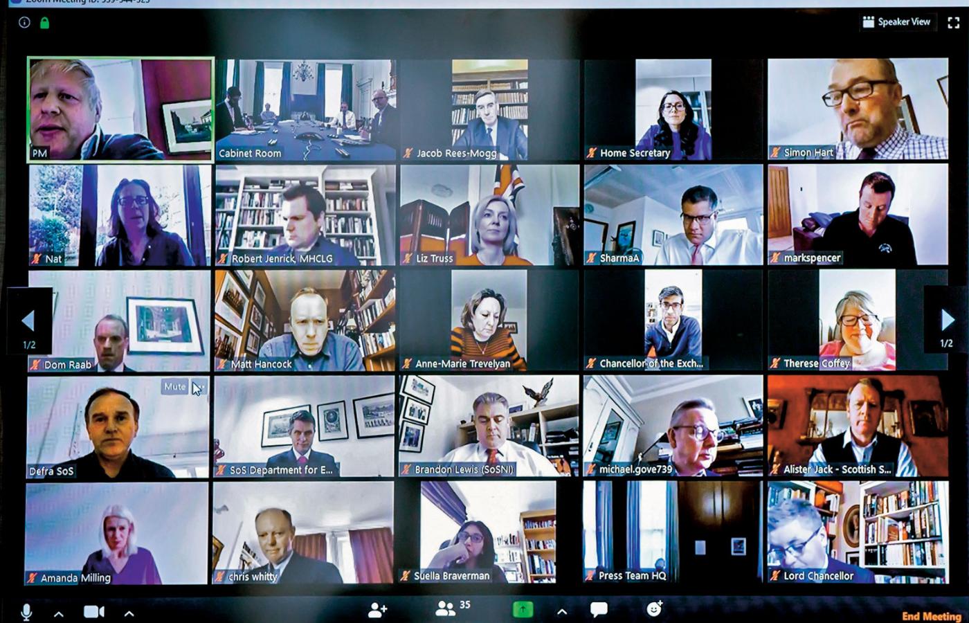 Wypadałoby przyjąć jakąś symboliczną datę przejścia w erę masowych spotkań online. Niezłą wydaje się 31 marca – dzień, w którym brytyjski rząd, z chorym już wtedy Borisem Johnsonem na czele, zwołał posiedzenie w trybie telekonferencji. Kadr ze spotkania, który premier opublikował na Twitterze, był wymowny: część z uczestników łączyła się z domowych pieleszy, ministrowie występowali w strojach mniej formalnych niż zwykle, na tle domowych obrazów lub biblioteczek. Mimo że zrzut ekranu był niewyraźny, błyskawicznej – i złośliwej – analizy doczekały się wnętrza i aparycja uczestników. A także fakt, że brytyjski premier wraz ze zdjęciem opublikował widoczny w lewym górnym rogu numer identyfikacyjny spotkania. „To na wypadek, gdyby ktoś chciał wziąć udział w kolejnej naradzie brytyjskiego gabinetu” – skomentował ironicznie irlandzki dziennikarz Richard Chambers.