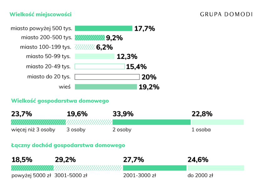 Niezmiennie z platform e-commerce najczęściej korzystają mieszkańcy dużych miast (powyżej 500 tys. Mieszkańców – 23%, 200-500 tys. Mieszkańców – kolejne 11,5%), ale wśród ankietowanych silną grupę stanowili też mieszkańcy polskich wsi (20,4%) oraz małych miasteczek (14,7%).
