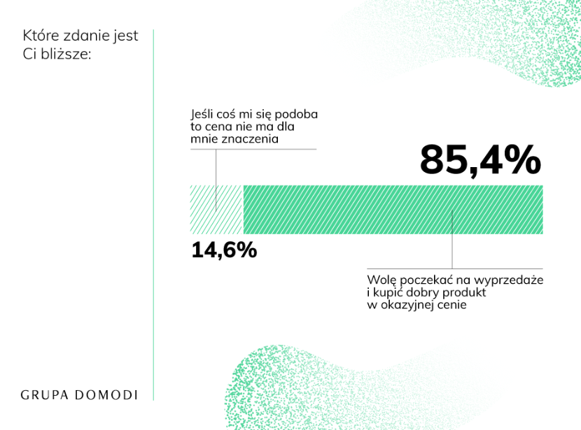 Wciąż czekamy na wyprzedaże, by kupić ubrania w sieci w najlepszych cenach. 85,4% korzystających z modowych sklepów internetowych woli zaczekać na sezonowe obniżki cen i zaoszczędzić, niż wydać na wymarzoną rzecz więcej w ofercie regularnej.