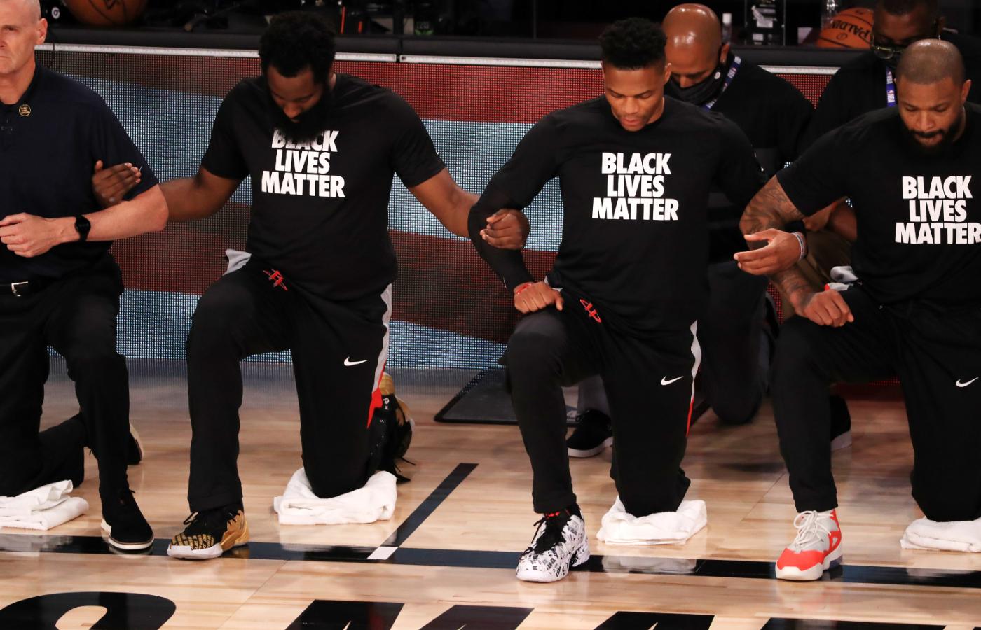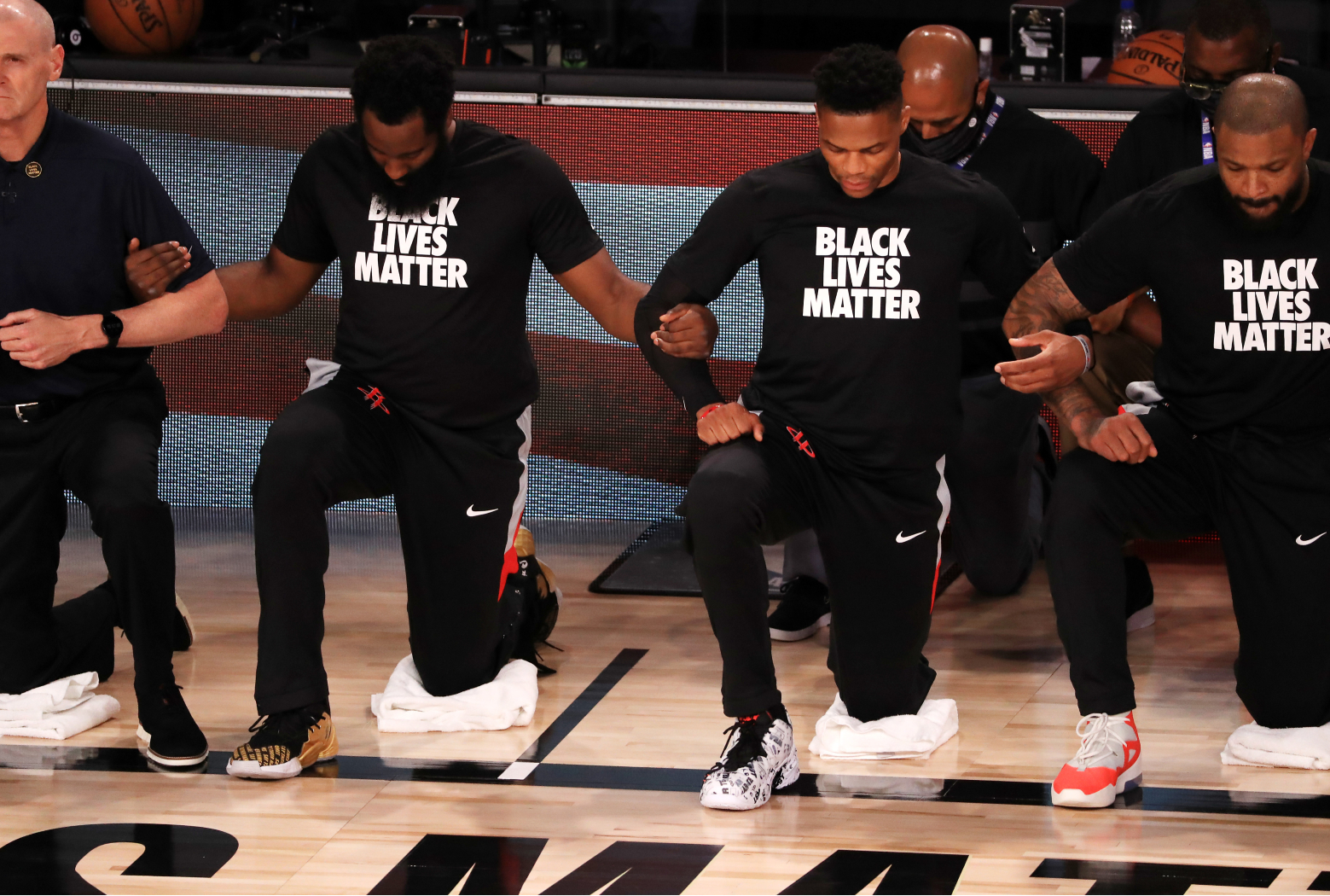 Ten pandemiczny finisz sezonu jest inny jeszcze w kilku aspektach poza brakiem widowni. Po pierwsze, w roku eksplozji ruchu żądającego równych praw dla czarnych obywateli ogromna większość zawodników w tym miejscu na koszulkach, gdzie zwykle noszą nazwisko, ma jeden z ok. 30 wspólnie ustalonych napisów. Na boisku grają więc: „Black Lives Matter”, „Equality”, „Peace”, „Justice”, „Vote”, „Freedom”, „Enough”, „Education Reform”, „Say Their Names”, „I Am a Man”, „I Can’t Breathe”, „Power to the People” i inni.