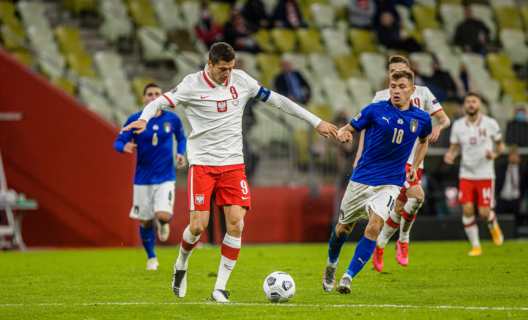 Polacy byli przy piłce znacznie rzadziej niż Włosi, ale nie bronili się rozpaczliwie. Kilka razy próbowali skonstruować akcje, które przy odrobinie szczęścia mogły skończyć się golem, a przynajmniej celnym strzałem. W ofensywie denerwował jednak brak umiejętności wykorzystania Roberta Lewandowskiego. On sam też nie potrafił pokonać całej obrony Włochów. Najlepszy piłkarz sezonu w Europie, supersnajper – tym razem chyba ani razu nie strzelił w kierunku bramki.