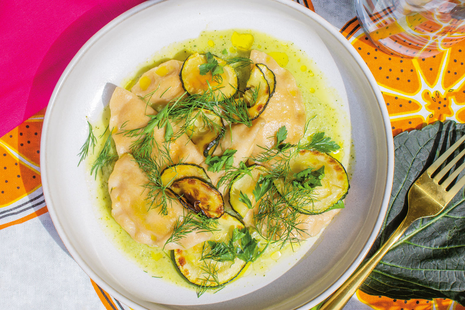 Chrupiące zielone szparagi łączę z tofu. Cały farsz ma odświeżający, lekki smak, idealny na wiosnę. Dodatki do pierożków są równie proste. Lekki sos cukiniowy i podsmażona cukinia. Całość cieszy i podniebienie, i oko. Gotując sezonowo, pamiętajmy o ziołach. Nadają całości świeżego wykończenia i pięknie prezentują się na talerzu.