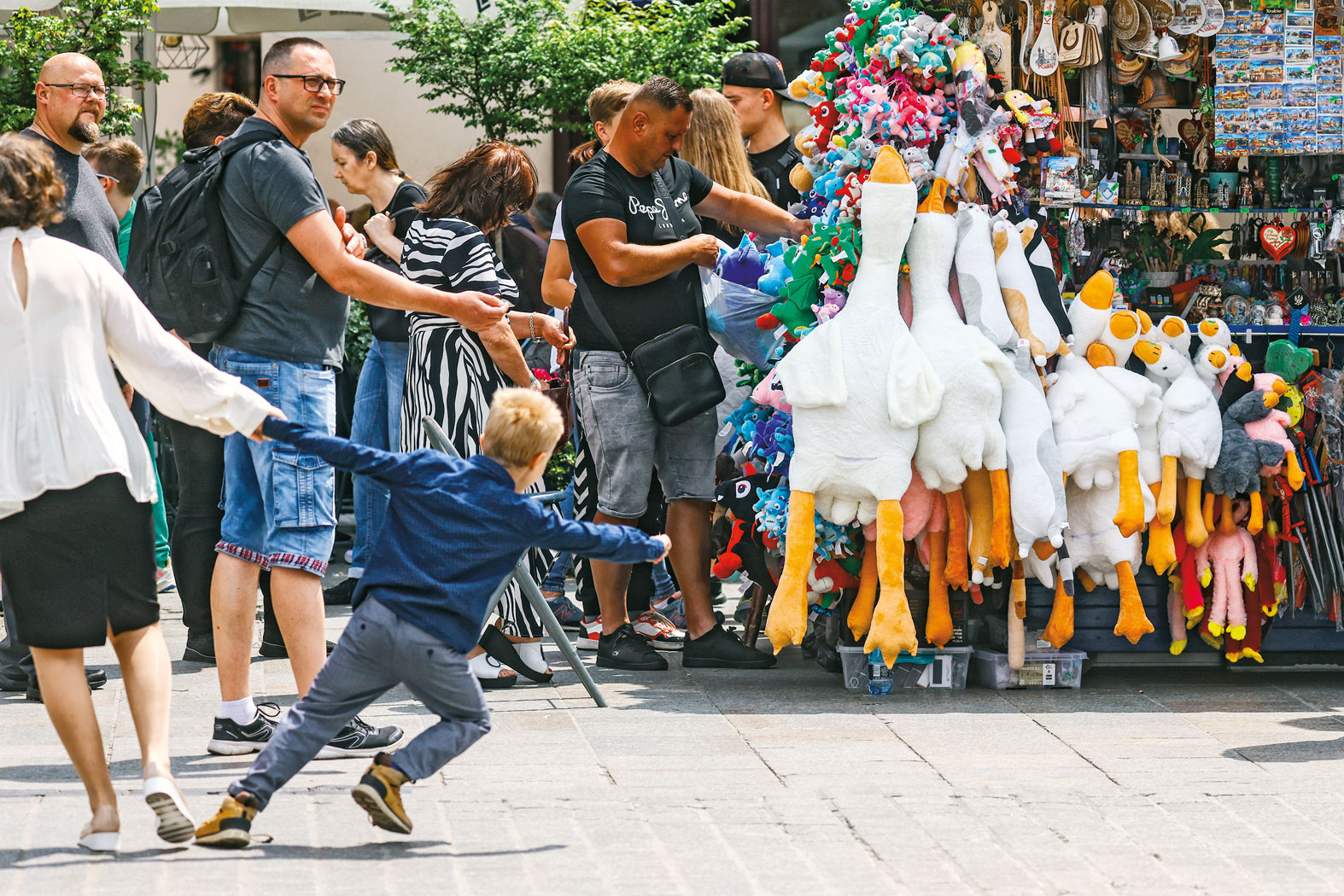 Ci, którzy na razie nie wyjeżdżają na letni wypoczynek, też kupują je swoim dzieciom: w internecie. Na Allegro jest obecnie prawie 2 tys. ogłoszeń z pluszowymi gęśmi (ceny od kilkunastu do ponad 300 zł w zależności od rozmiaru ptaka). Długie kolejki po nie ustawiały się nawet przy placu Na Rozdrożu w Warszawie podczas marszu 4 czerwca (prawdopodobnie dlatego, że na upartego mogły uchodzić za kaczory). Sprzedawcy pamiątek przyznają to otwarcie – zabawkowe gęsi sprzedają się jak świeże bułeczki.