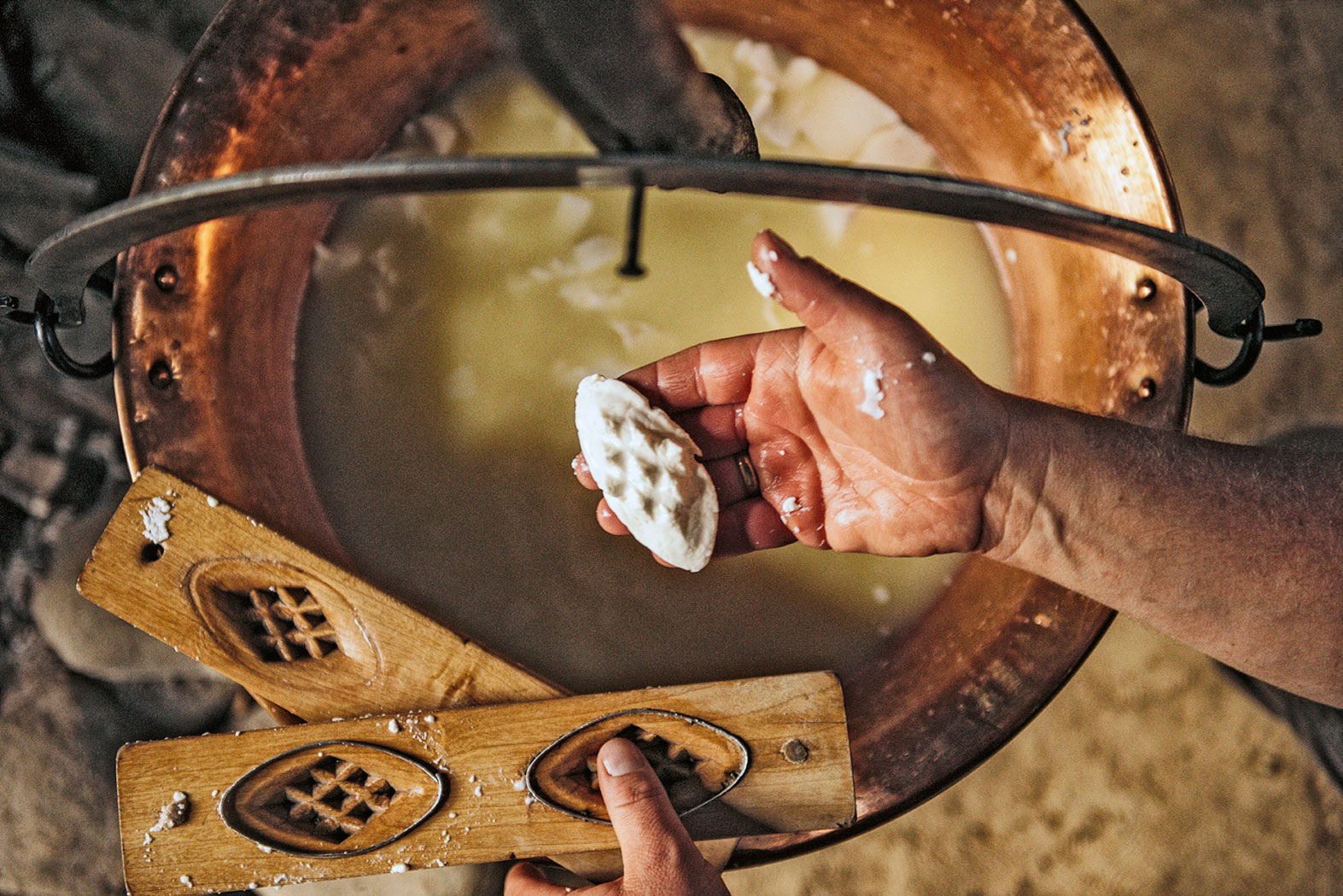 Bierzemy się do pracy. Na tych warsztatach serowarskich nie ma nic na skróty. Na początku dostaję odpowiednią czystą odzież ochronną, czyli kitel i czepek w kolorze mleka, i zostaję poinstruowana o zasadach zachowania higieny pracy. Wchodzimy do sterylnych pomieszczeń serowarni, gdzie pani Stanisława prezentuje, jak mleko, prosto od krów lokalnych rolników, zostaje poddane procesowi produkcji sera. W jakiej temperaturze, kiedy trzeba oddzielić skrzep i w końcu ręcznie odciągnąć serwatkę. Wszystko trwa około dwóch godzin. Na końcu dostaję kilka małych foremek, głównie w kształcie koła i serca. Wciskam do nich ser, obracam do góry nogami i jest. Dostaję do posypania zioła i kwiatki. Moje małe serowe dzieła mogę zabrać do domu. Zjadam je jednak od razu.