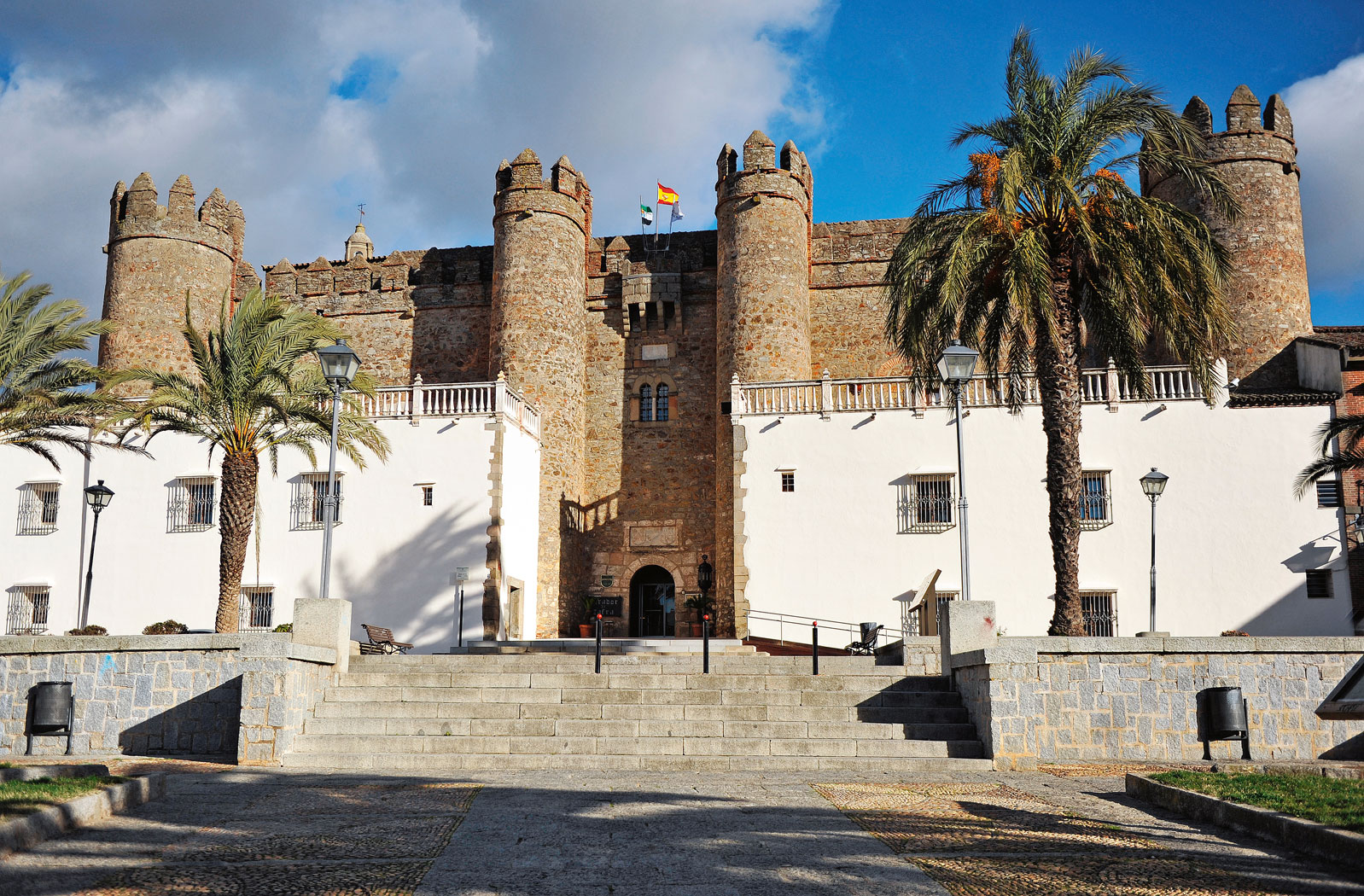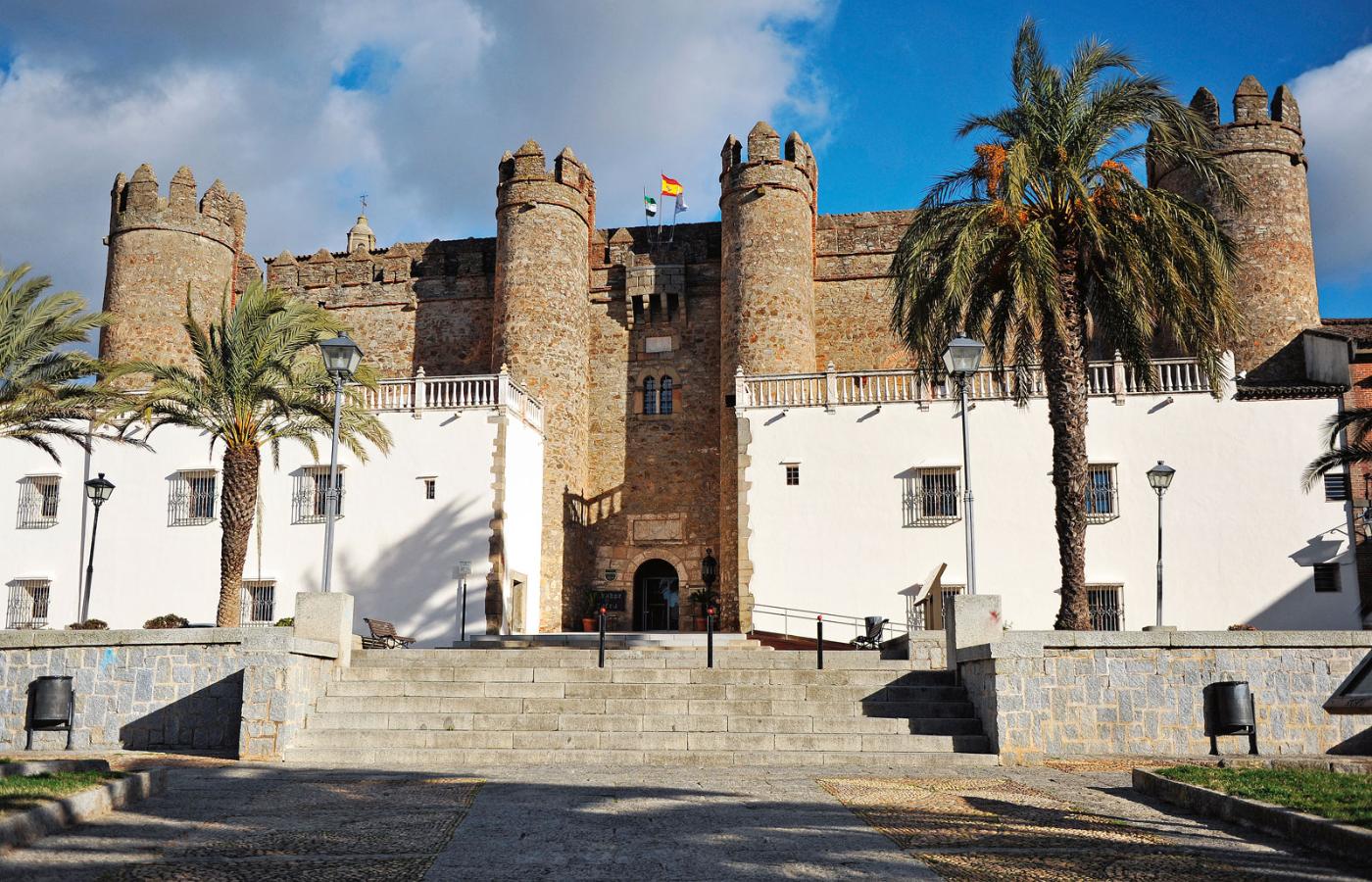 Główną fasadę zdobią cztery potężne, zwieńczone blankami wieże. Cała budowla wygląda jak forteca w środku miasta. – Wzniesiono ją w XV w. jako alkazar, czyli warowny zamek w stylu mauretańskim – mówi Antonio Cancho Sierra, historyk i przewodnik po hiszpańskim regionie Estremadura, w tym po mieście Zafra, gdzie znajduje się zamek. – Twierdzę wkrótce przekształcono w książęcy pałac – ciągnie, gdy wchodzimy na wyłożony marmurem renesansowy dziedziniec. Na zewnątrz słońce praży niemiłosiernie, ale w średniowiecznych murach nie czuć upału.