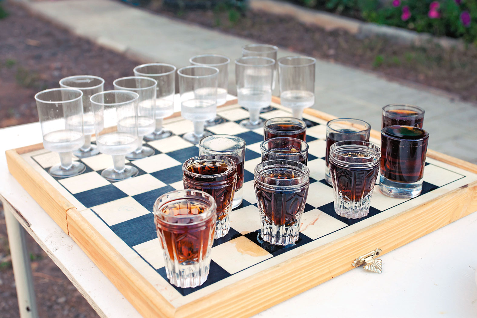 Patologiczne modyfikacje szachów nie są nowym pomysłem – od lat da się kupić tę starą grę w wersji specjalnej – z kieliszkami zamiast figur. Te kieliszki można na własną odpowiedzialność wypełniać alkoholem i opróżniać w miarę upływu rozgrywki. Efekt uboczny to swoiste wyrównywanie szans. Bicie łączy się z piciem, więc wygrywający pije więcej, a strategia się sypie. Odświeżył ten temat serwis Miejski.pl, podając taką oto (zaaprobowaną przez czytelników) najnowszą definicję patoszachów: „Miejsce z kamiennym stołem z szachownicą, które w praktyce służy do chlania”. Rzeczywiście, stół z szachownicą jest stałym elementem wystroju miejskich skwerków, stoi często obok elementów siłowni pod gołym niebem, które w praktyce faktycznie zamieniają się często w miejsca spotkań towarzyskich.