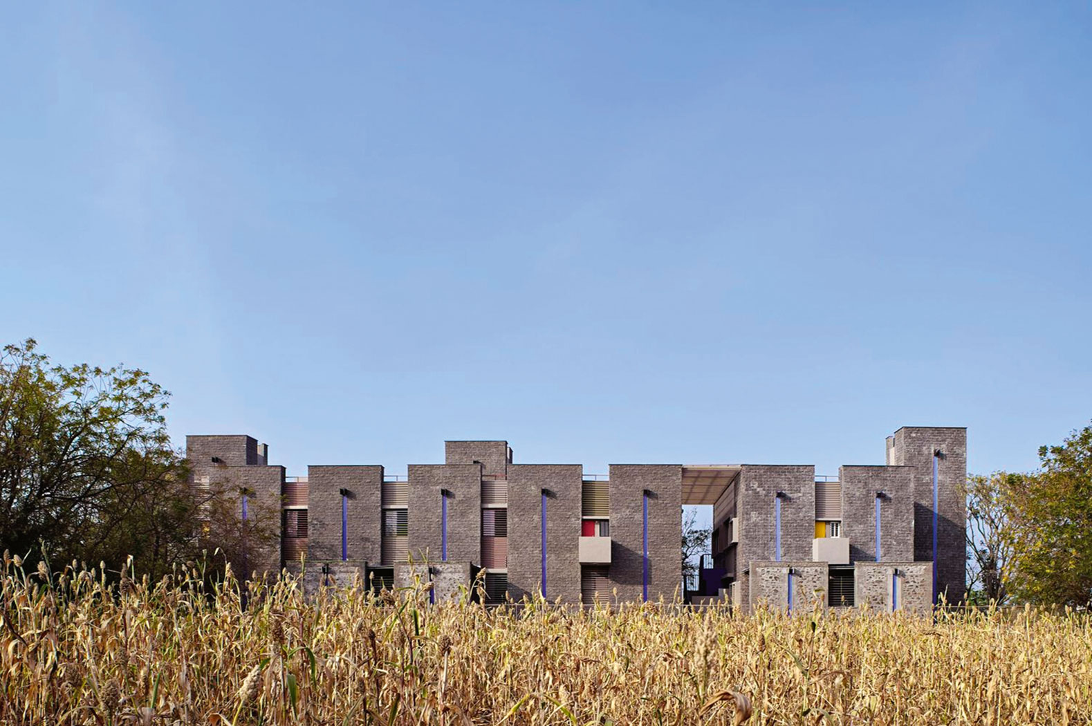 Choćby ascetyczny kompleks budynków o zgeometryzowanych bryłach osadzonych na rozległym patio, opracowany przez hinduskie studio PPBA w miasteczku Loni. Zbudowany z lokalnie pozyskiwanego bazaltu, położony w dziczy pełni rolę hostelu dla kobiet w kryzysie bezdomności. 35-osobowa kadra w doświetlonych salach stwarzających warunki do reintegracji i terapii zajmuje się także aktywowaniem lokalnych wspólnot. Ale wymiar społecznej reintegracji jest tylko jednym z kilku istotnych. Projekt uwzględnia kwestie zrównoważonego rozwoju, niskiej emisyjności i przejmowania przez użytkowniczki odpowiedzialności za najbliższe środowisko życia. Największym wyzwaniem w tworzeniu logistyki wielofunkcyjnego ośrodka była kwestia zbierania i przetrzymywania wody w suchym regionie tego cierpiącego na chroniczne deficyty kraju. Ponieważ budynki znajdują się na zboczu, kontenery z wodą pitną można było umieścić również pod ziemią, natomiast deszczówka spadająca z dachu specjalnymi kanałami wędruje do urządzeń destylujących. Zaś w kuchni zastosowano biogaz pozyskiwany z materiału roślinnego.
