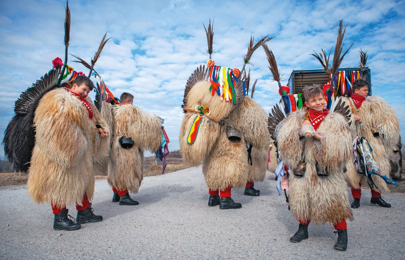 Na podwórko wbiega cała zgraja. Wyglądają jak niedźwiedzie albo długowłose yeti. Przed chwilą, na znak diabła, założyli wielkie, ciężkie maski. Spod futrzanych grzywek widać niewielkie oczy, wyszczerzone zęby z fasoli, sterczące wąsy i długi, wywalony jęzor, a oblicza są dodatkowo przyozdobione piórami i kolorowymi wstążkami. Przed domem kurenci – tak nazywają się te stwory – zaczynają podskakiwać i tańczyć, potrząsają przyczepionymi do pasów dzwonkami, a futra falują im we wszystkie strony. Ich wizyta ma przynieść domostwu szczęście i urodzaj. Po chwili pojawiają się gospodarze. Wtedy diabeł zdejmuje maskę i grzecznie się wita. W zamian dostaje pęto kiełbasy, na co włochacze reagują radosnym podzwanianiem. Spod masek wyłaniają się twarze, rozpoczyna się uczta. Na stołach już czekają pajdy z wędliną, pączki z konfiturą morelową i domowe wino.