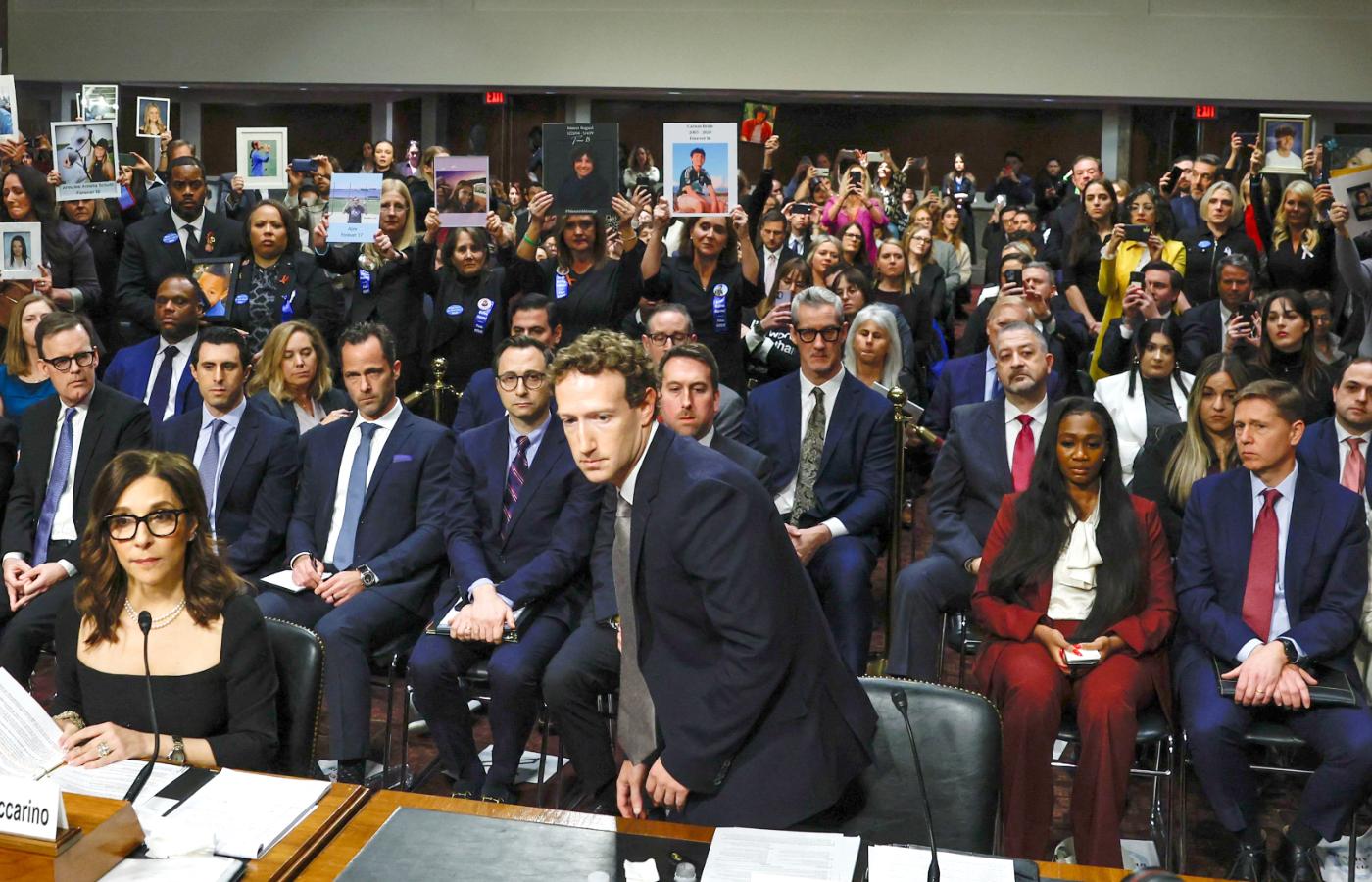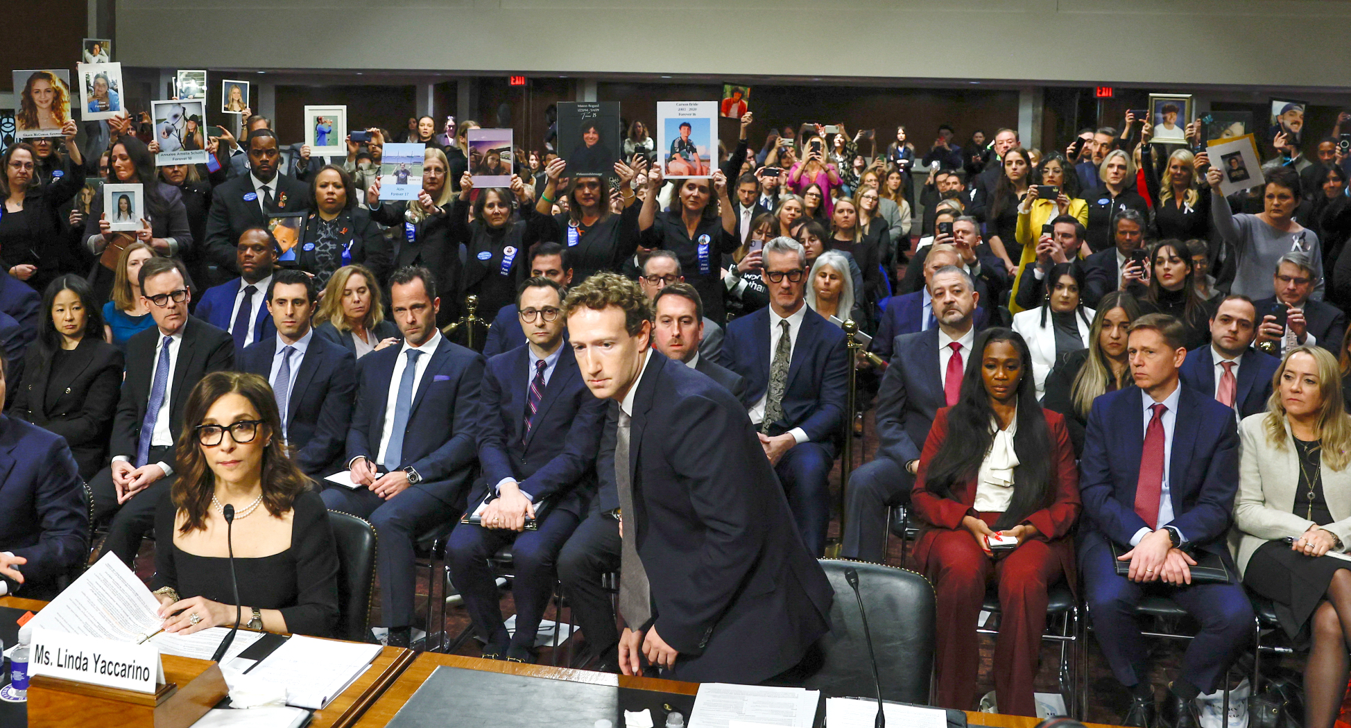 Powagi wydarzeniu dodał fakt, że w sali zgromadzili się rodzice młodych, którzy stali się ofiarami internetowych prześladowań, a na sam początek posiedzenia wyświetlono nagranie osoby, która padła ofiarą przemocy seksualnej. Lindsey Graham, konserwatywny senator z Karoliny Południowej, stwierdził, że firmy mają „krew na rękach”. W pewnym momencie, po wyjątkowo agresywnym fragmencie przesłuchania prowadzonym przez Republikanina Josha Hawleya, Mark Zuckerberg, prezes Mety, do której należą Facebook i Instagram, wstał i osobiście przeprosił rodziców ofiar internetowej przemocy.