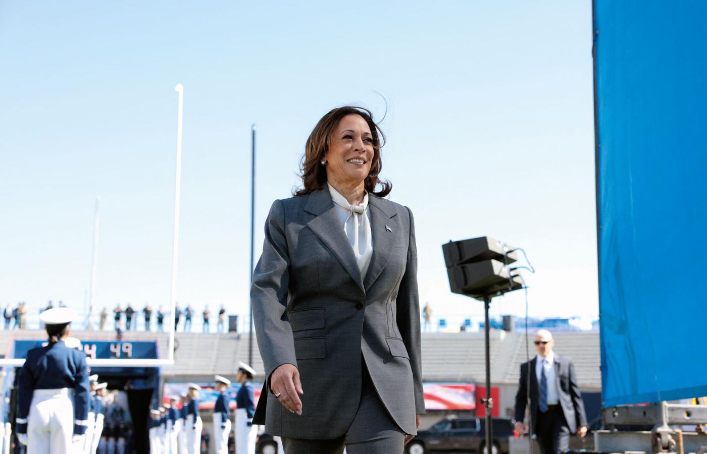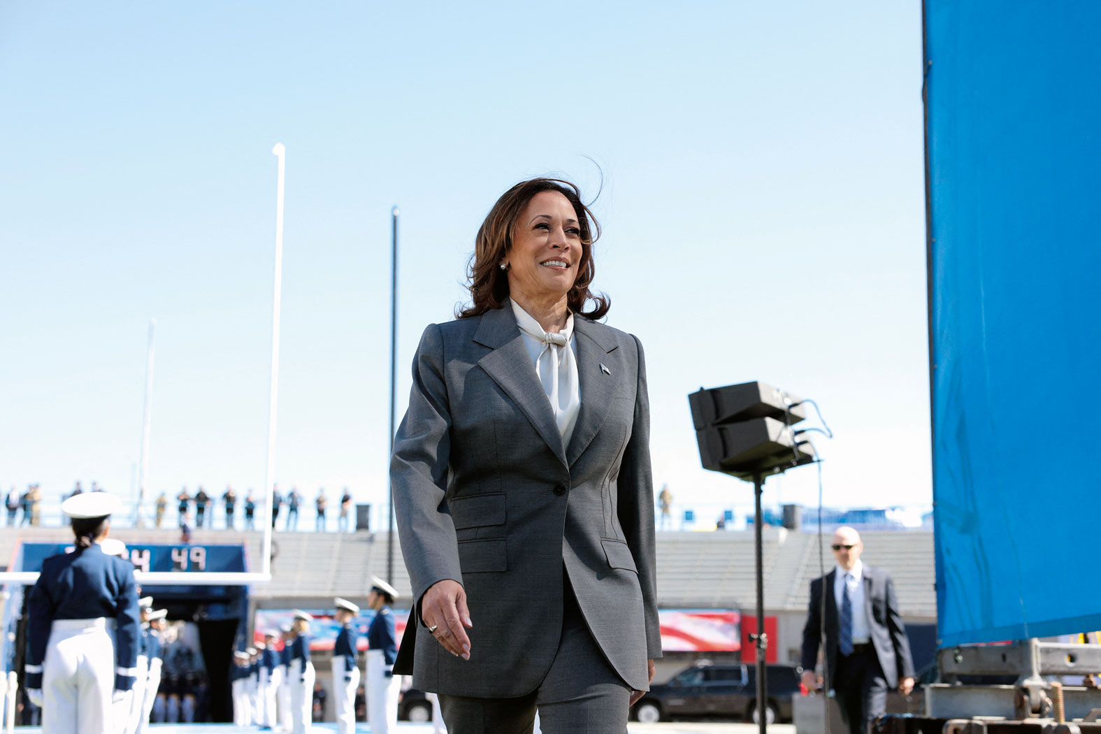 Garnitur. Czarny, granatowy albo w jednym z odcieni szarości, tym między gołębim a popielatym. Ale także garnitur różowy, z białym podkoszulkiem pod spodem i perłami do kompletu. Nogawka jest szeroka, bo krok musi być zamaszysty, ale nie za szeroka, żeby nie odciągała uwagi i nie plątała się wokół kostki. Buty? Szpilki w kolorze neutralnym (beżowym, czarnym), nie za wysokie, żeby nie trzeba było się kołysać, nie za niskie, żeby jednak dodawały kilku centymetrów. O czym mowa? Czy to lista zakupów na letnie wyprzedaże? I czy nie pomyliliśmy periodyków? Nie, to opis kilku strojów, w których wystąpiła amerykańska wiceprezydentka Kamala Harris po tym, jak prezydent Joe Biden wycofał się z walki o reelekcję i wskazał ją jako swoją faworytkę.