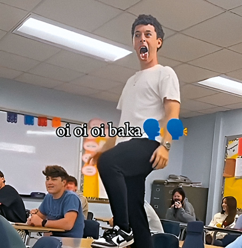 Z Japonii przywędrowało do nas wiele przydatnych wynalazków, z walkmanem czy zupą błyskawiczną na czele. Dla równowagi przyszedł stamtąd również pomysł, żeby robić z siebie idiotę w stylu zainspirowanym fragmentem filmu anime. Chodzi o spopularyzowaną na TikToku zabawę: wchodzimy na krzesło albo lepiej na stół – koniecznie w pomieszczeniu pełnym ludzi – i coraz głośniej krzyczymy: „Oi oi oi baka!”, strojąc przy tym odpowiednio głupie miny. Bo słowo baka w języku japońskim oznacza idiotę, głupka. Rzecz nie jest nowa – odnosi się do innej głośnej zabawy na TikToku, w myśl której bohater lub bohaterka mieli w miejscu publicznym wstać i zacząć coraz śmielsze próby wokalne (ten trend nazywał się stosownie: „Moment, w którym zdałem sobie sprawę, że potrafię śpiewać”).