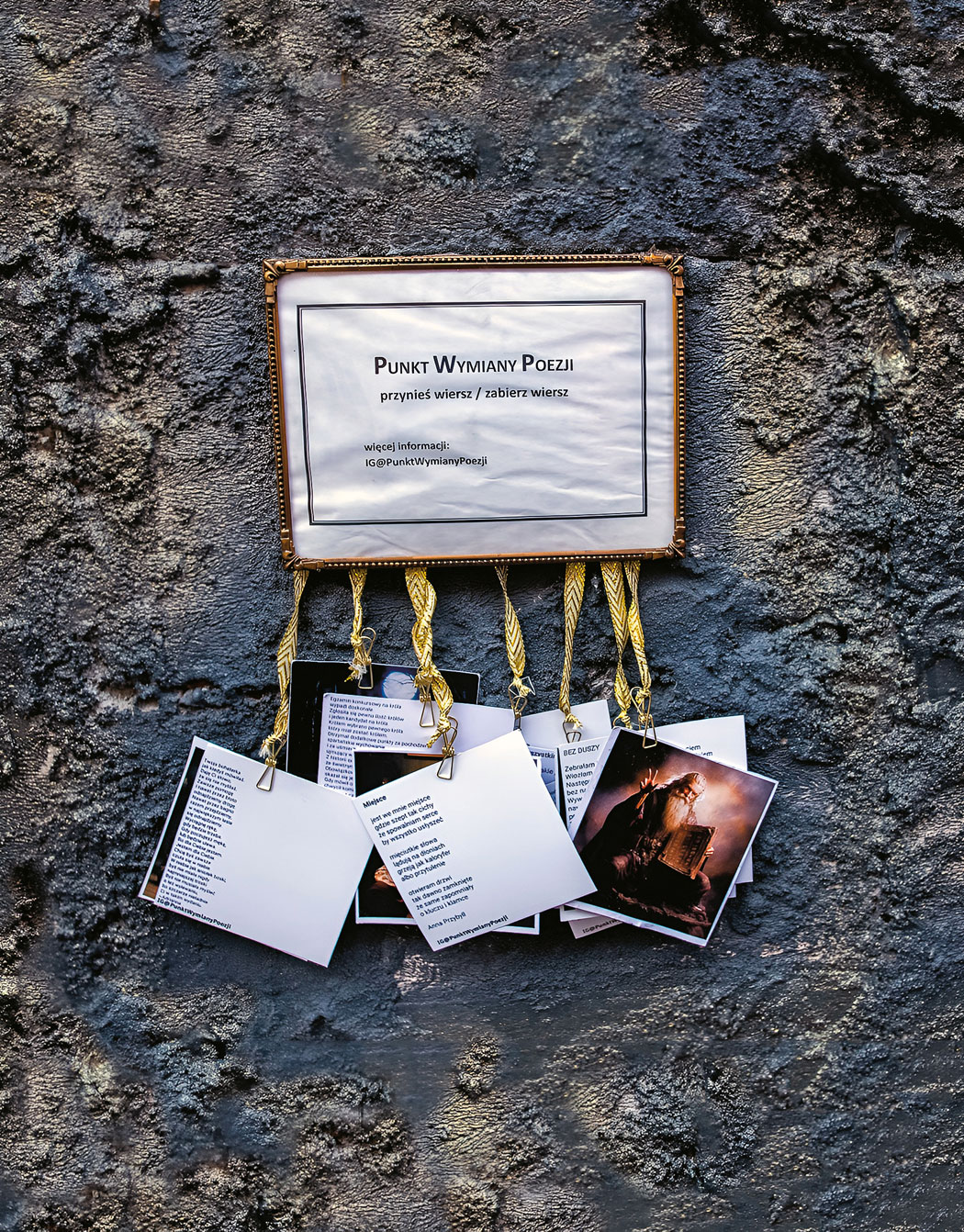 Zaczęło się od Poznania. To tam latem 2023 r. zawisła pierwsza ramka własnoręcznie przygotowana przez Kozłowskiego. Cel był prosty, choć nieoczywisty – chodziło o stworzenie przestrzeni do wymiany poezji. Każdy, kto miał ochotę, mógł zostawić w ramce wiersz, własny lub z jakiegoś powodu dla niego istotny. Pierwsza była „Dłoń” Szymborskiej, ulubiony utwór Zuzanny Wolskiej, która razem z Kubą od początku rozwija Punkt Wymiany Poezji. – Chciałem stworzyć takie miejsce w Poznaniu, nie miałem większego planu. Zawiesiłem ramkę, a tydzień później odezwała się do mnie pewna poetka z Warszawy. Chciała powiesić taką samą ramkę u siebie – wspomina z uśmiechem Kozłowski.
