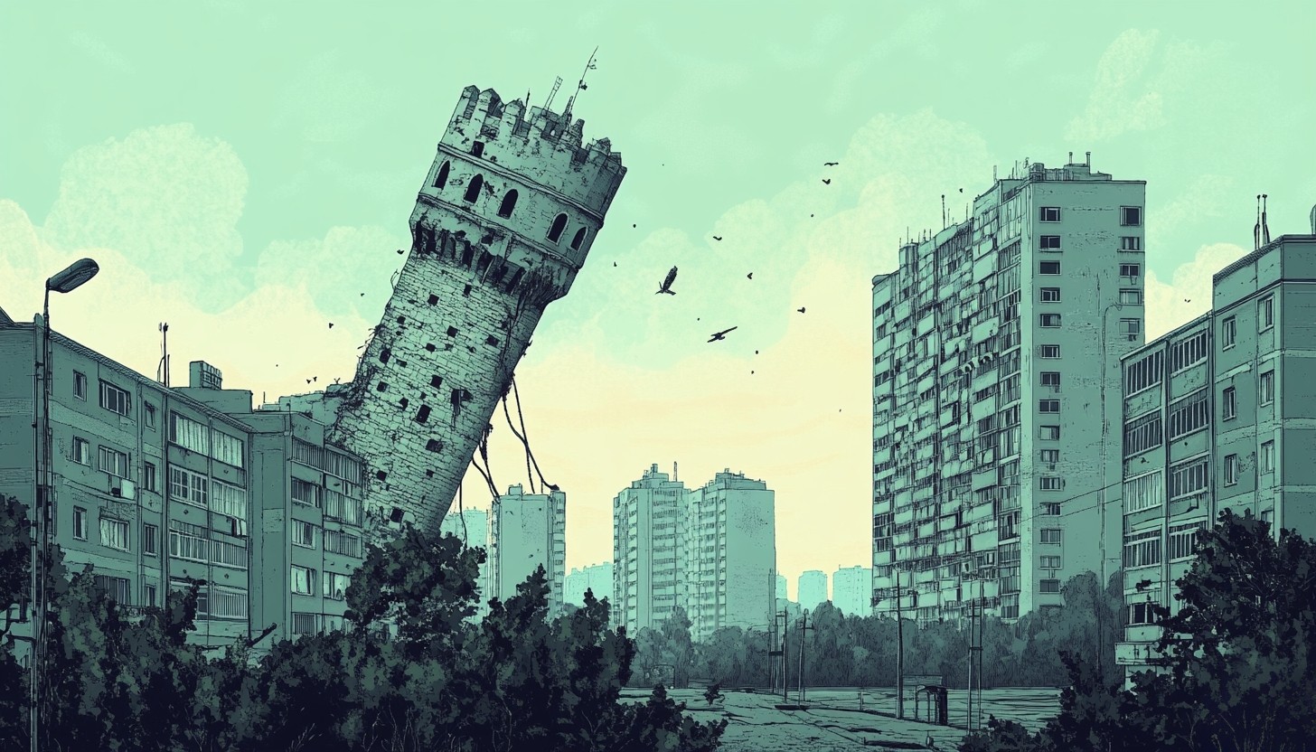 Fakty są takie, że wieża nie tylko stoi na bakier, ale z każdym dniem pochyla się coraz bardziej. Zaczęło się ponoć niewinnie, najpierw milimetr, potem centymetr, a na końcu z rozmachem – jakby wieża usiłowała na raty spierniczyć z tych całych Ząbkowic (ja tam cię, wieżo, trochę rozumiem).