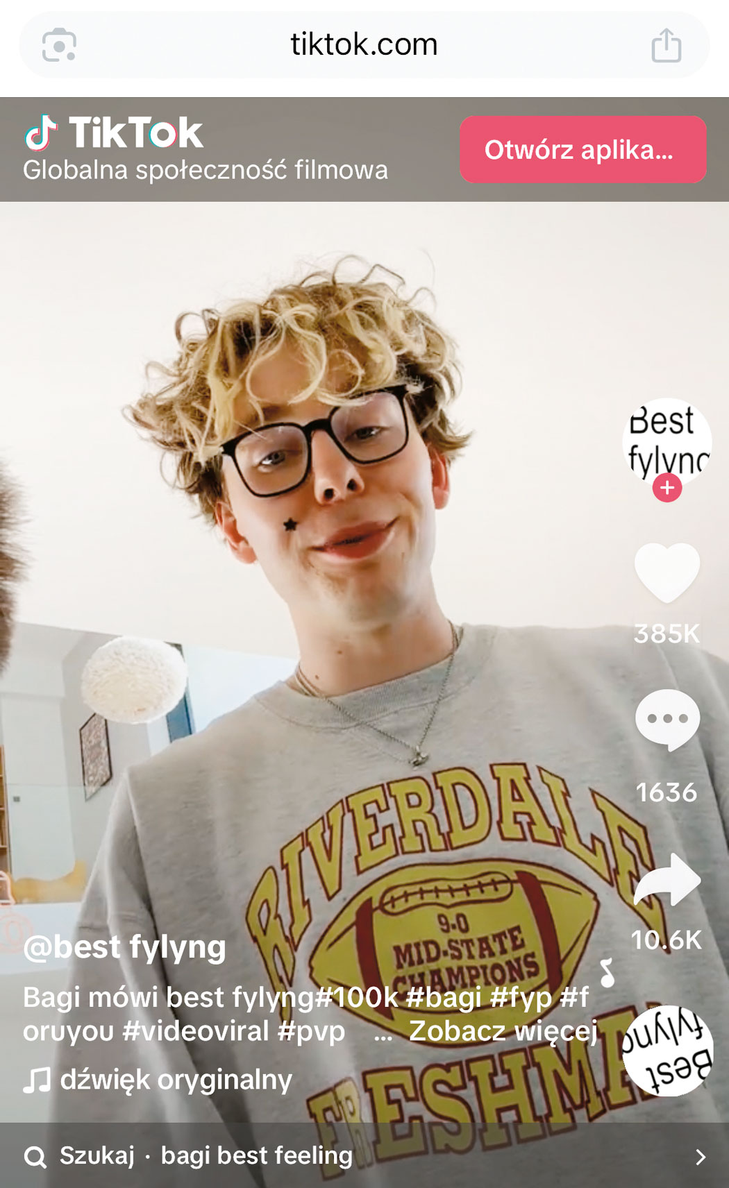 Czasem ta puenta się wydłuża do dwujęzycznej: „Best feeling, najlepsze uczucie”. Bywa, że jest jeszcze dłuższa, bo źródłem popularności całej frazy jest trend na TikToku, który wywołał opublikowany pod koniec kwietnia filmik młodego chłopaka z profilu Best Fylyng z udziałem jego idola, przedsiębiorcy i influencera Bagiego próbującego sił jako wokalista: „Best Fylyng, pozdro z fanem, najlepsze uczuuuucie”. Rzecz rozeszła się błyskawicznie, pojawiły się komentarze: „Zrobiłbyś serię, w której różni influencerzy mówią: best fylyng, pozdro z fanem, najlepsze uczucie – tak jak z Bagim zrobiłeś”.