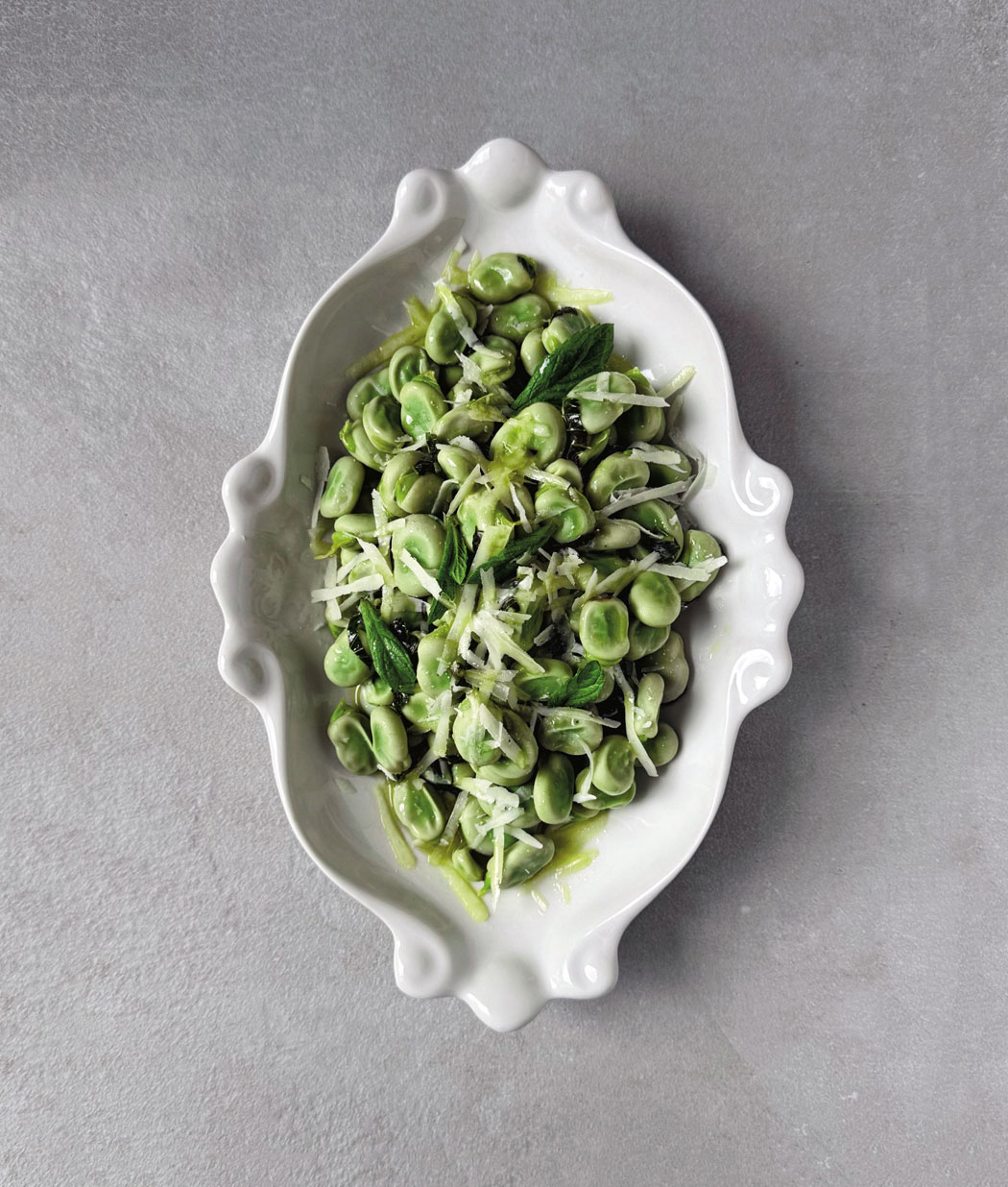 Na kolejne strąki trafiłem w Italii. Tu też nikt nie obiera bobu przed sprzedażą. Kupuje się go na kilogramy i z wielką siatą wraca do domu, a potem obiera i obiera, bez końca. Właśnie we Włoszech uznałem, że czas się czegoś dowiedzieć o ulubionych ziarenkach i ich kulinarnym wykorzystaniu, bo w Polsce na bób jest w zasadzie jedna metoda (jak wyżej: masło i bułka tarta). Przejrzałem kilka książek i okazało się, że Włosi są wyjątkowo zmyślni. W Genui z pierwszych, najdelikatniejszych ziaren robi się coś na kształt pesto. Trzeba zerwać skórki, a potem rozgnieść bób w moździerzu z odrobiną oliwy. W Rzymie przyrządza się sałatkę, podając bób z groszkiem i karczochami. W Umbrii pierwszym pomysłem też jest sałatka, ale dosmaczona owczym serem pecorino i miętą. W Apulii robi się pastę nieco podobną do hummusu, ale z oliwą i miodem. Na zdjęciu prezentuje się ładnie, tylko skąd ten kremowy kolor?