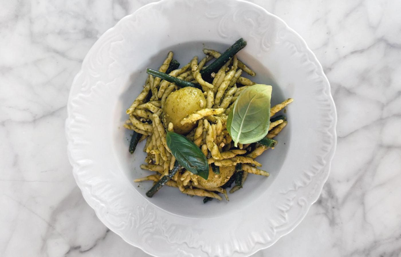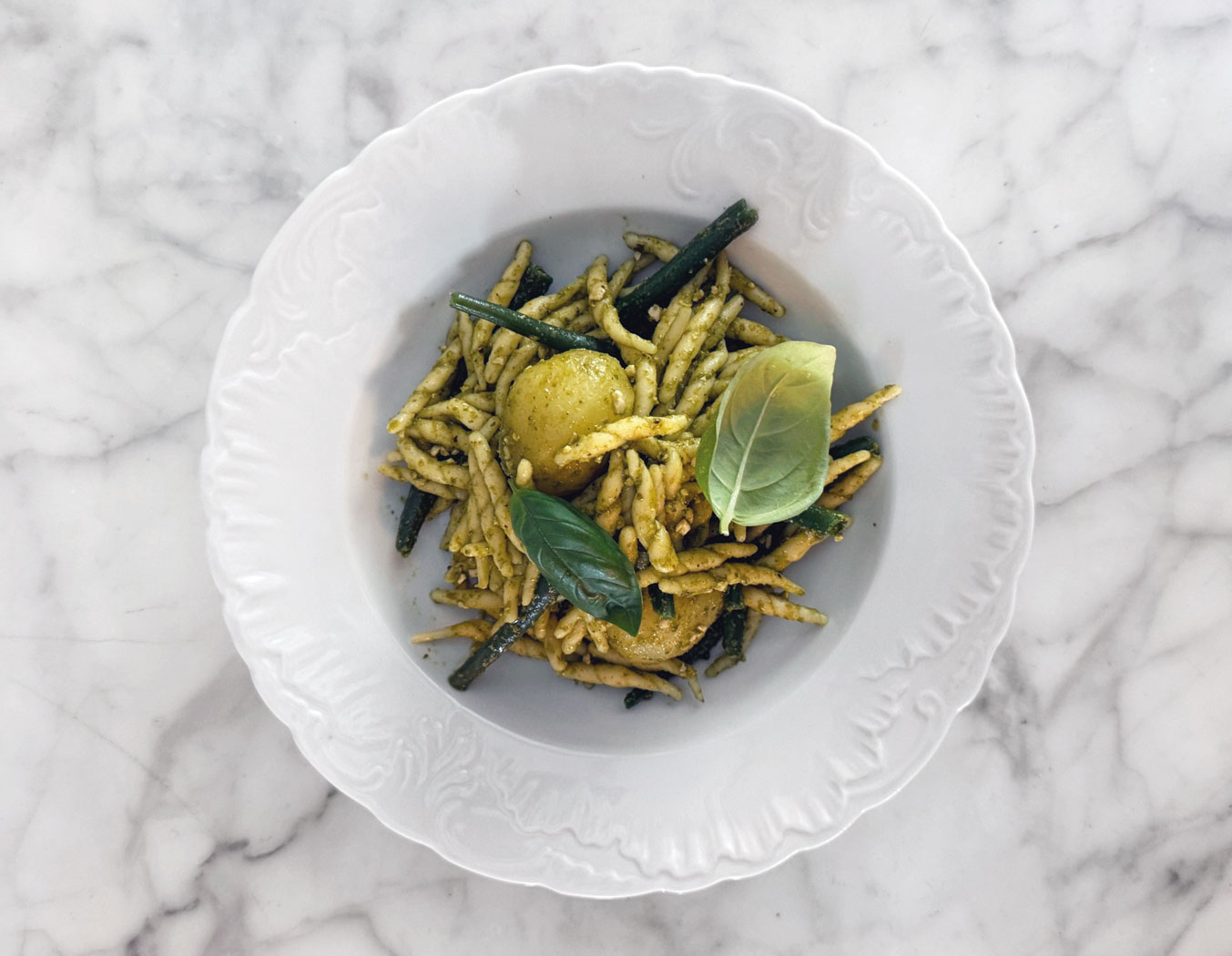 Po pierwsze: prawdziwe genueńskie pesto podaje się z makaronem, młodymi ziemniakami i fasolką szparagową. Naraz! Najlepiej byłoby warzywa ugotować razem z makaronem, to jednak wyczyn, więc można osobno, ale trzeba wówczas mieć świadomość naginania reguł.