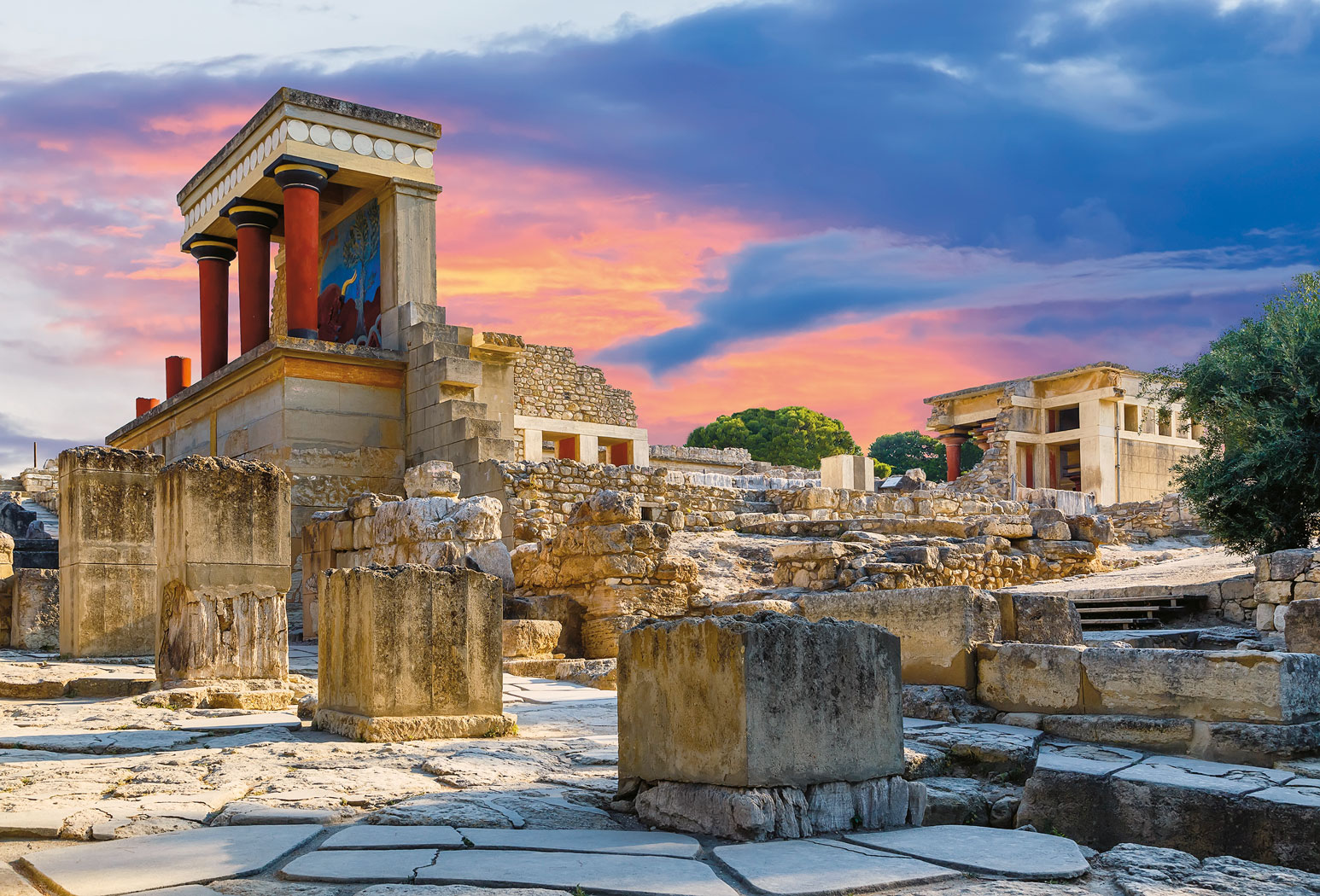Sir Arthur Evans, prowadząc wykopaliska w Knossos od 1900 do 1931 r., nie tylko odkrywał świat Minojczyków, on opowiadał ich historię, używając betonu, gipsu i własnej wyobraźni. Przemalował ściany, odbudował kolumny, dodał freski, czasem mając za punkt wyjścia jedynie fragment wzoru. Zbudował wizję matriarchalnej, pokojowej cywilizacji, europejskiego Edenu sprzed czasu wojen i nierówności. W przeciwieństwie do innych pałaców minojskich, jak Mali czy Fajstos, archeolodzy przez dekady kręcili nosem na nieodwracalne zniszczenia w Knossos, które odbierają autentyczność pałacowi legendarnego króla Minosa.