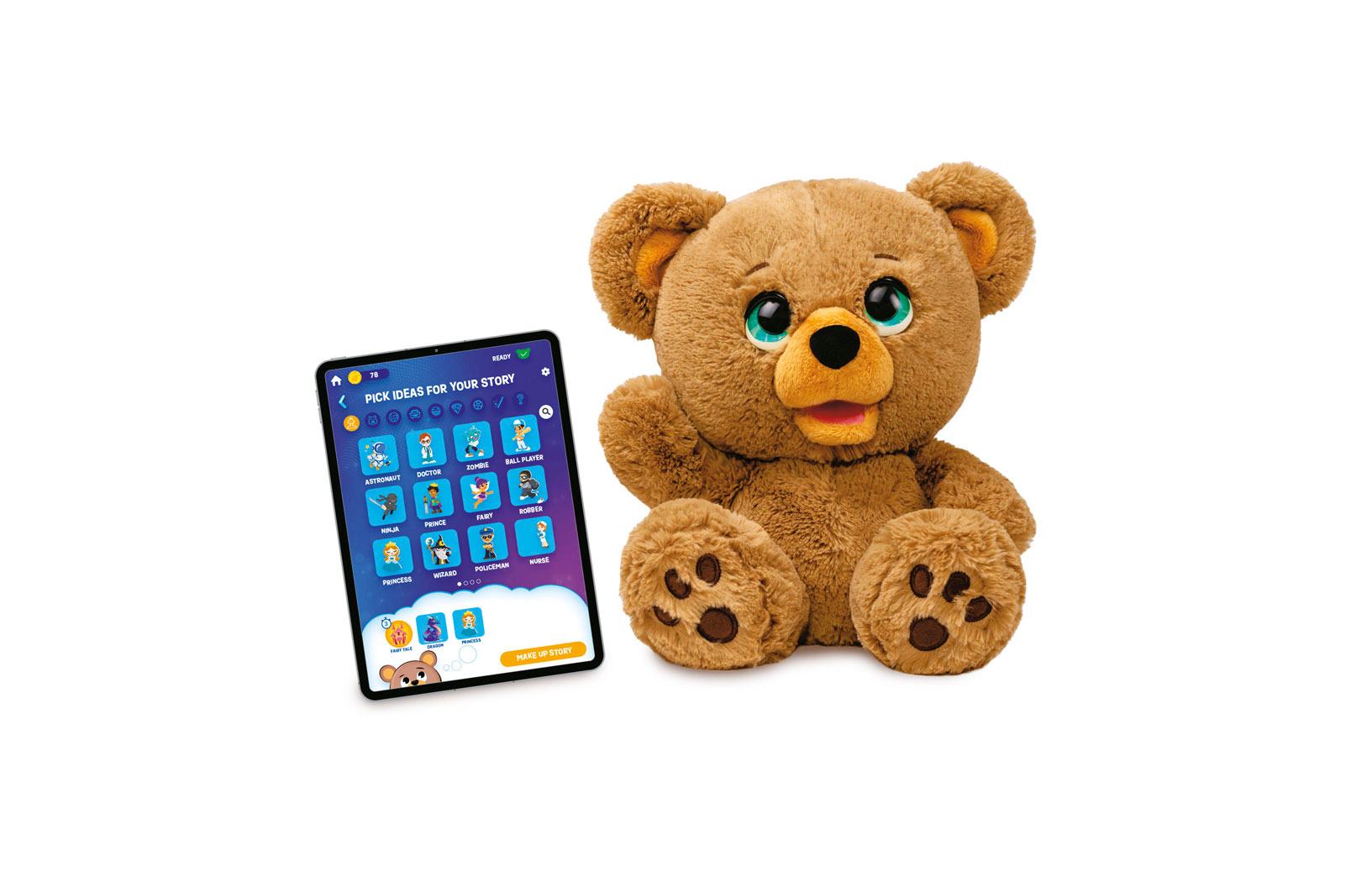 Czy inteligentne pluszaki to dobra alternatywa dla ekranów? Miś Poe został wyposażony w sztuczną inteligencję, która pozwala mu opowiadać bajki („Wybierz bohatera, miejsce i rodzaj opowieści, np. zabawną, straszną, przygodową. Możesz także zostawić wszystko w rękach Poe – miś samodzielnie uzupełni brakujące elementy, tworząc fascynującą historię”). Nic nowego, poza interfejsem – zamiast (a raczej: oprócz) smartfonowej aplikacji ma formę dziecięcej gadającej przytulanki. Opowiadanie bajek przybrało formę usługi – po wyczerpaniu puli darmowych tokenów należy dokupić następne.