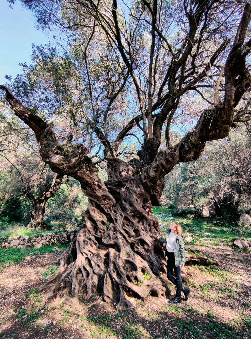Chropowaty pień porośnięty jest mchem. Zielone kępki rozpleniły się na korze, wokół charakterystycznych dla starych drzew oliwnych dziur. Niektóre otwory są tak duże, że spokojnie zmieściłby się w nich spory kot. „Kiedy Krzysztof Kolumb odkrył Amerykę, to drzewo już tu rosło i miało ponad 150 lat” – głosi napis na tabliczce przymocowanej do kory. Nieopodal rośnie rozłożysta Mitera – matka oliwnych drzew na greckiej wyspie Korfu – otoczona kręgiem z kamieni. Ponoć liczy sobie 1100 lat (chociaż słyszę też głosy, że 1500). To oznacza, że drzewo rosło tu już podczas chrztu Polski.