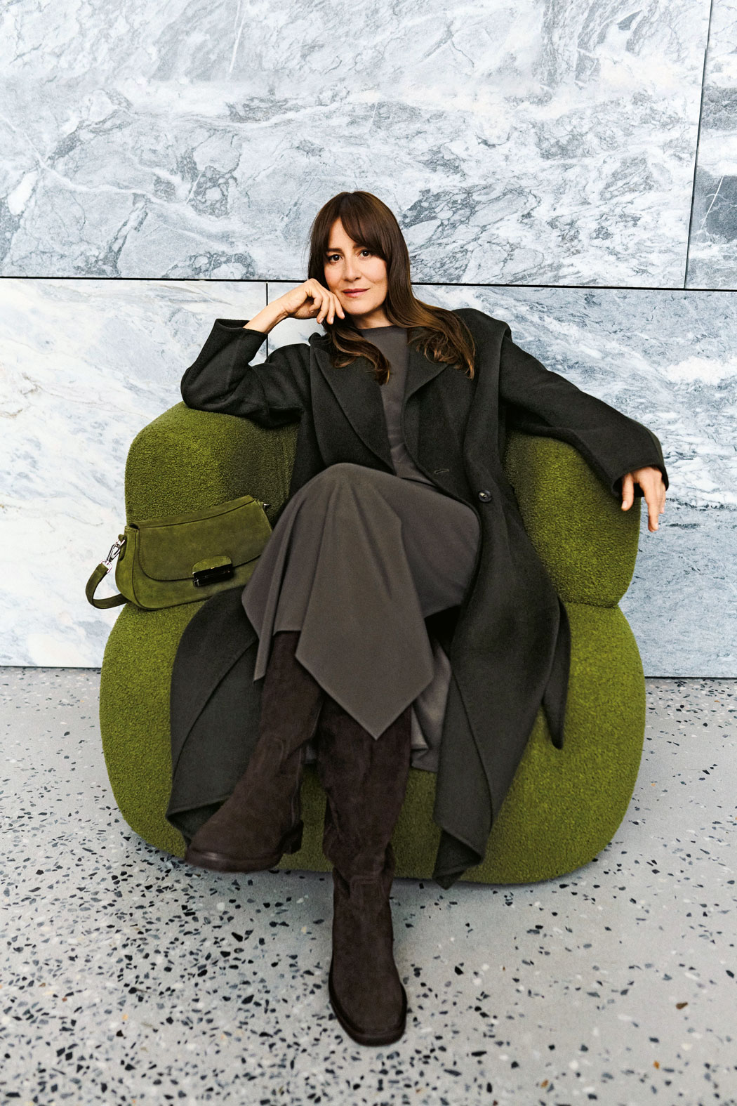 Nie żeby dominująca pozycja zieleni w akcesoriach i ubiorach była nowością. Daleko nie sięgając, ubiegły rok należał przecież do „brat green”, odcienia wypromowanego przez piosenkarkę Charli XCX za sprawą okładki jej płyty „Brat” [z ang. bachor lub smarkacz], zielonej właśnie. Tyle że zgodnie z tytułem ów odcień był agresywny, rozwrzeszczany. Tymczasem tej jesieni się uspokajamy.